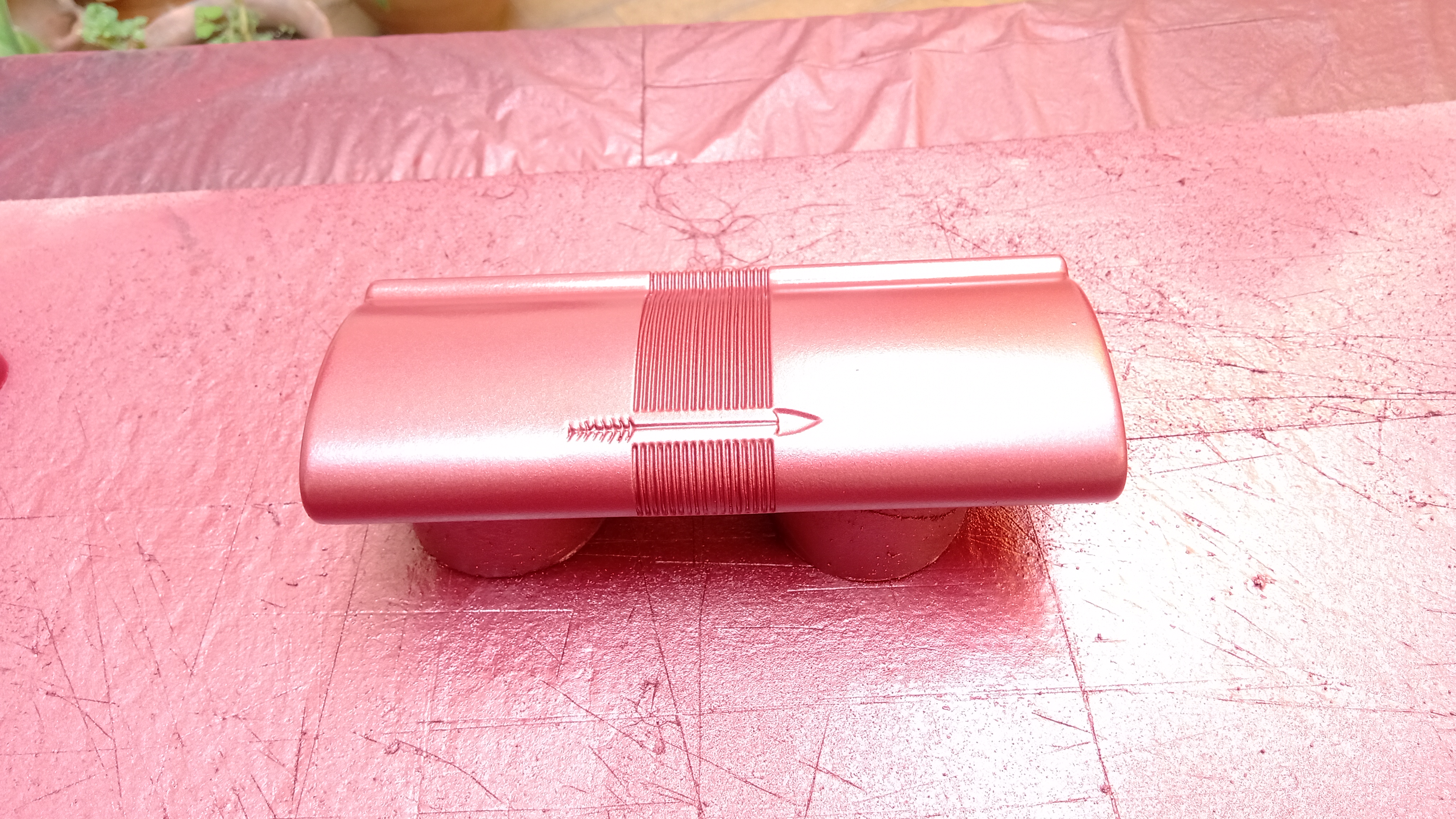 Per la verniciatura finale è stato deciso un nero metallizzato per la base (in origine era un nero lucido) e un rosso corallo automobilistico per il coperchio (in origine era un rosso corallo perlato)...