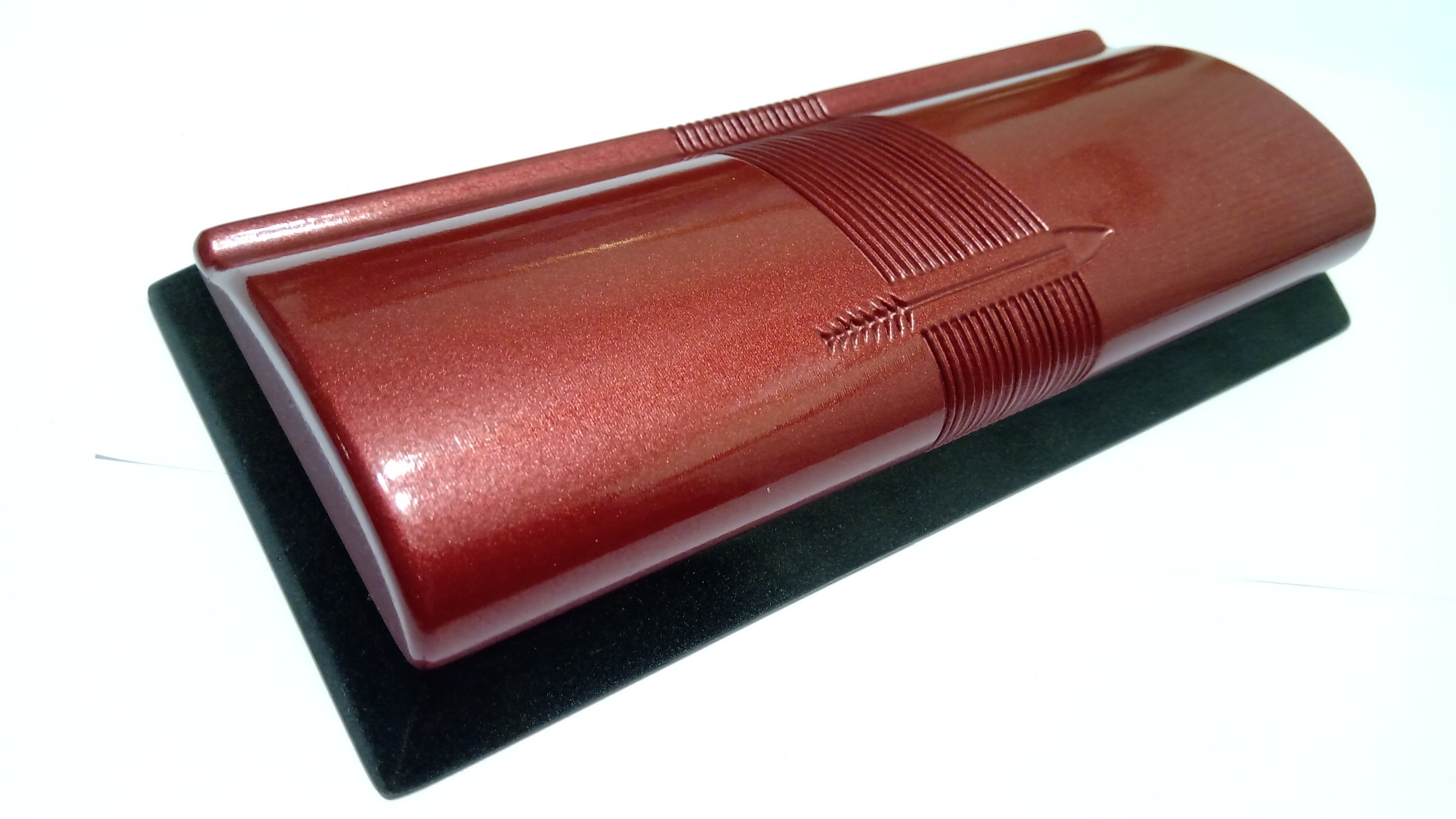 Oggi volevo condividere con voi il restauro di una penna stilografica, portamine e cofanetto, di un prodotto Parker che si chiamava Vacumatic Debutante Junior, una bellissima penna realizzata in celluloide laminata con anelli dorati sulla sua struttura, sistema di ricarica vacumatic, a vista pennino semiflessibile in oro, serbatoio dell'inchiostro traslucido, cappuccio con doppi anelli laminati in oro e un semplice gioiello nero a coronamento della sua clip, anch'esso in oro laminato.