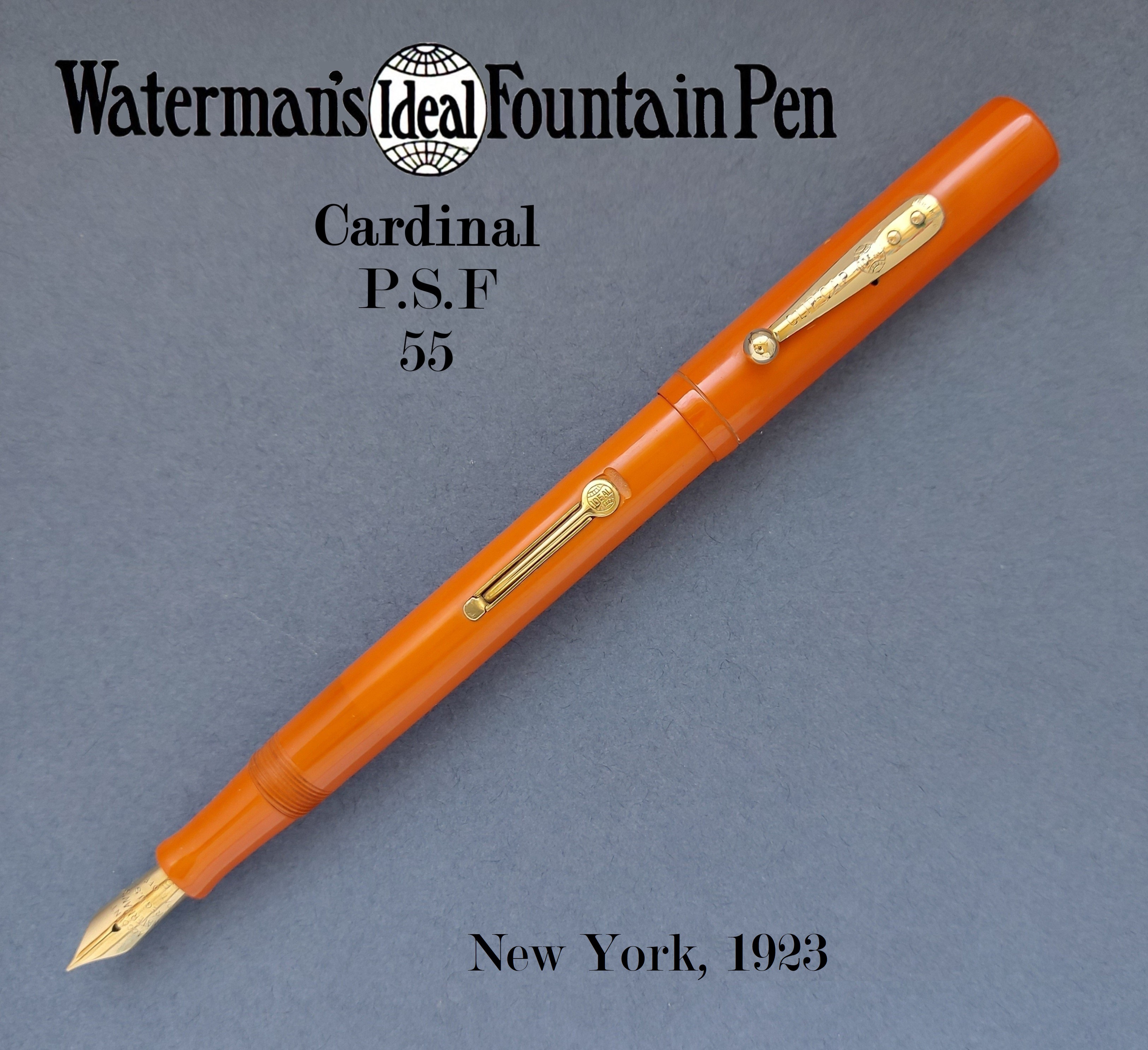 Il colore Cardinal fu per la prima volta impiegato per le eyedropper Waterman nel febbraio del 1907. Ovviamente (ho controllato personalmente sui quotidiani nordamericani), non era mai stato menzionato precedentemente. Arrivò solo un poco dopo il colore melange “mottled” (nero&rosso screziato) che lo aveva anticipato di soli tre mesi: d’altronde, il rosso ce lo dovevano sicuramente avere “in casa”, poiché ci voleva metà Cardinal e metà Nero per fare il “mottled”…