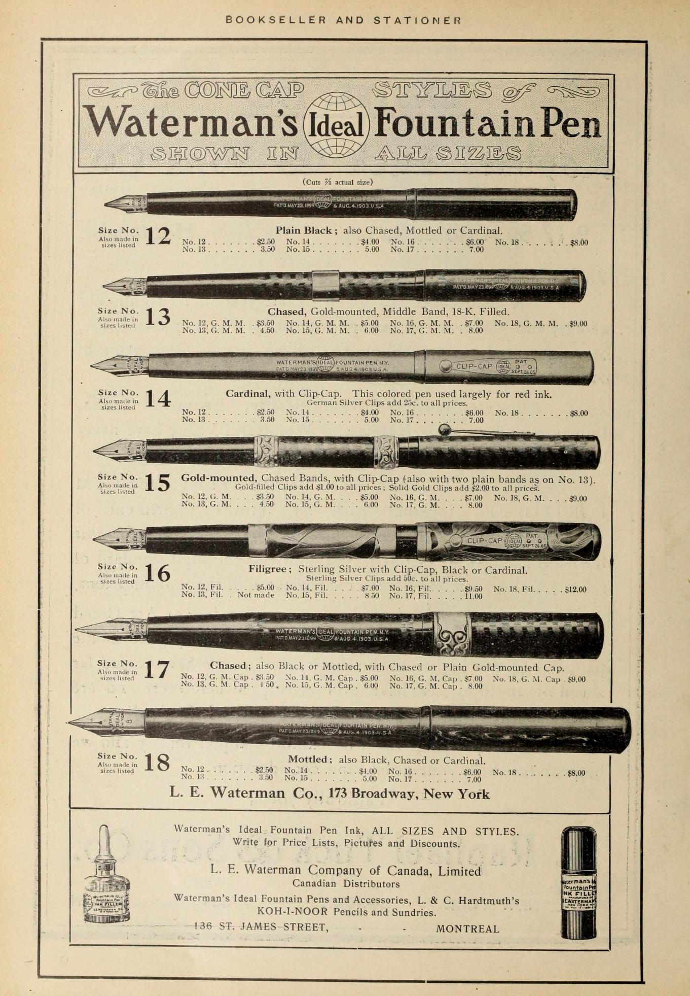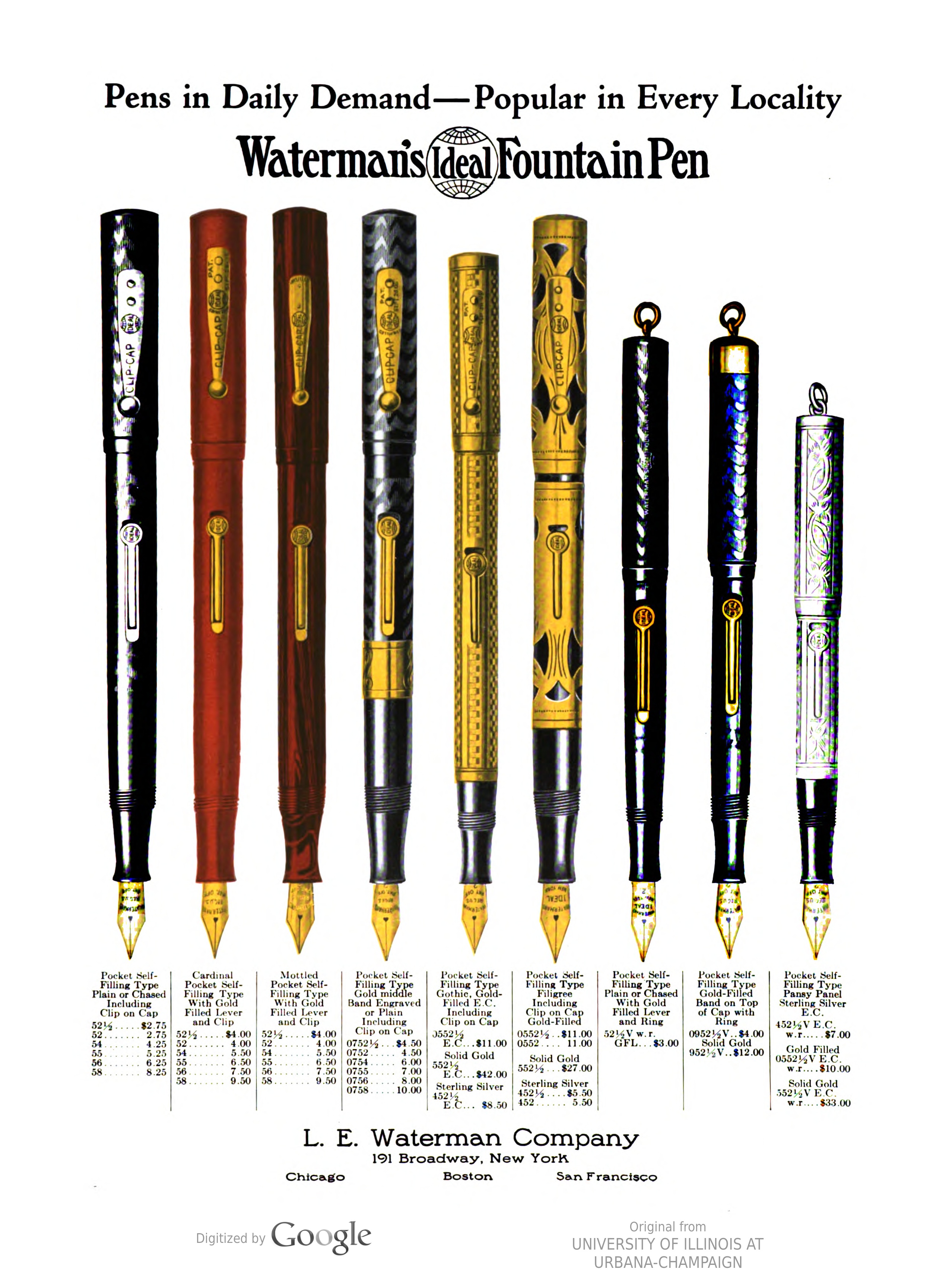• 55, 56 e 58. Waterman Catalog 1925, pag.18 (fonte PCA)