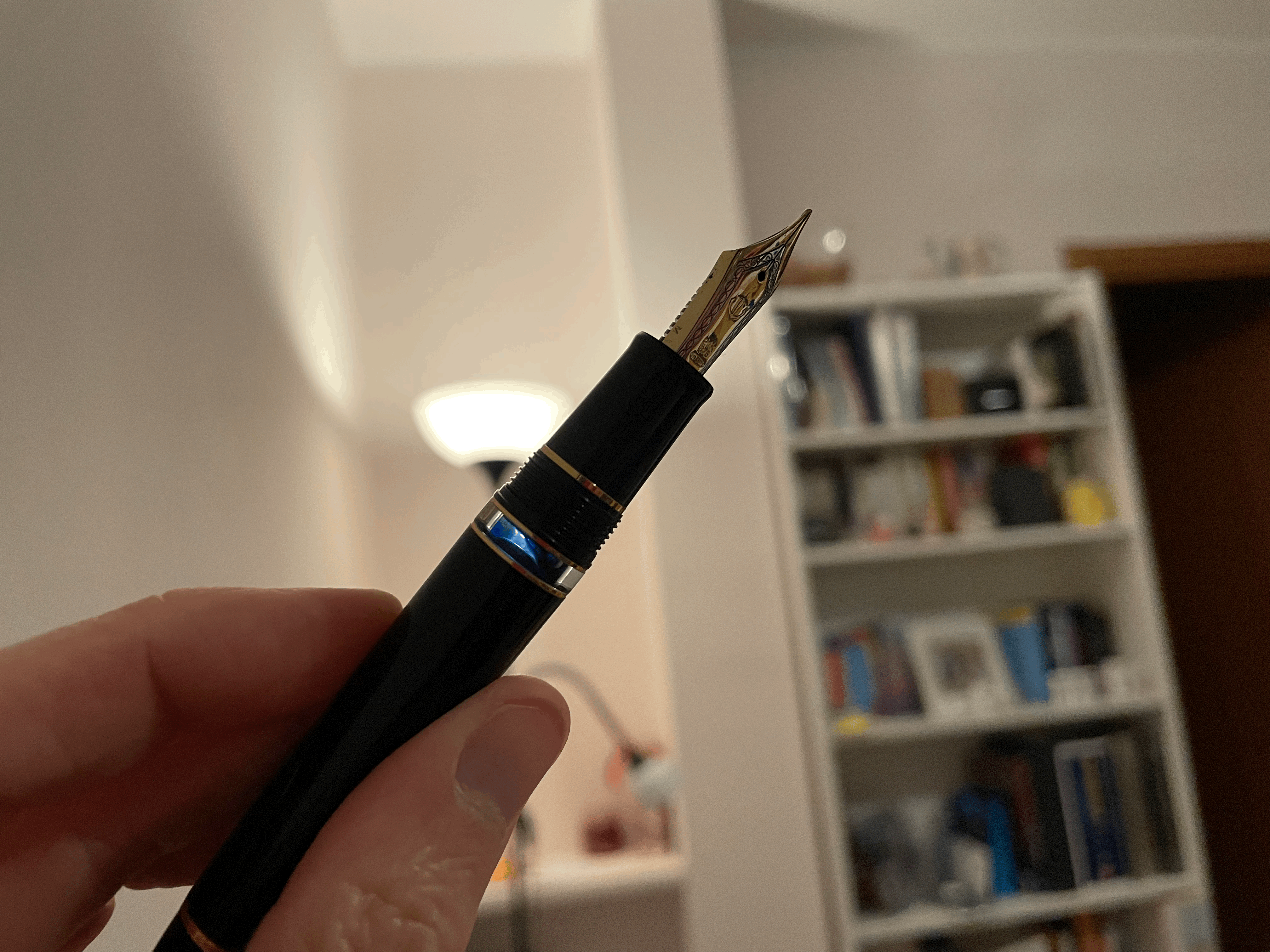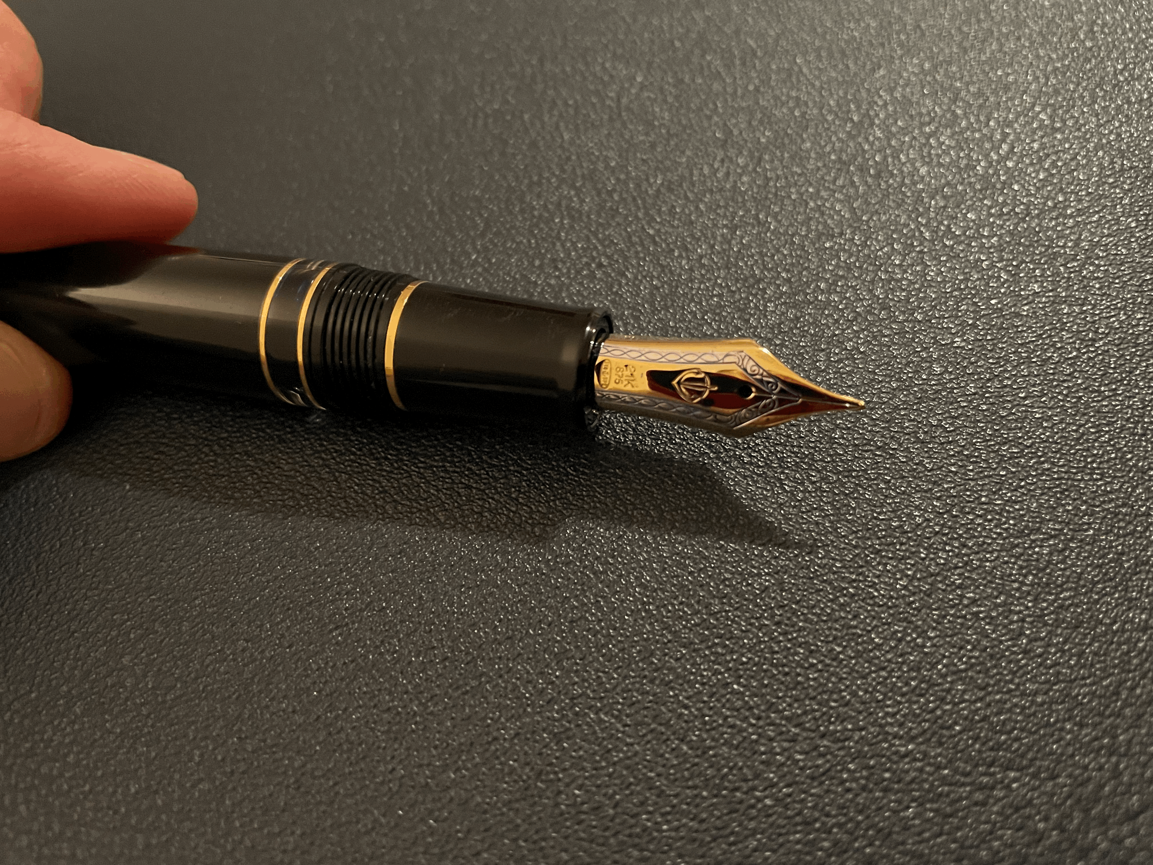 È un medio non abbondante, di certo più fine di un equivalente Pelikan, Montblanc o Pilot.