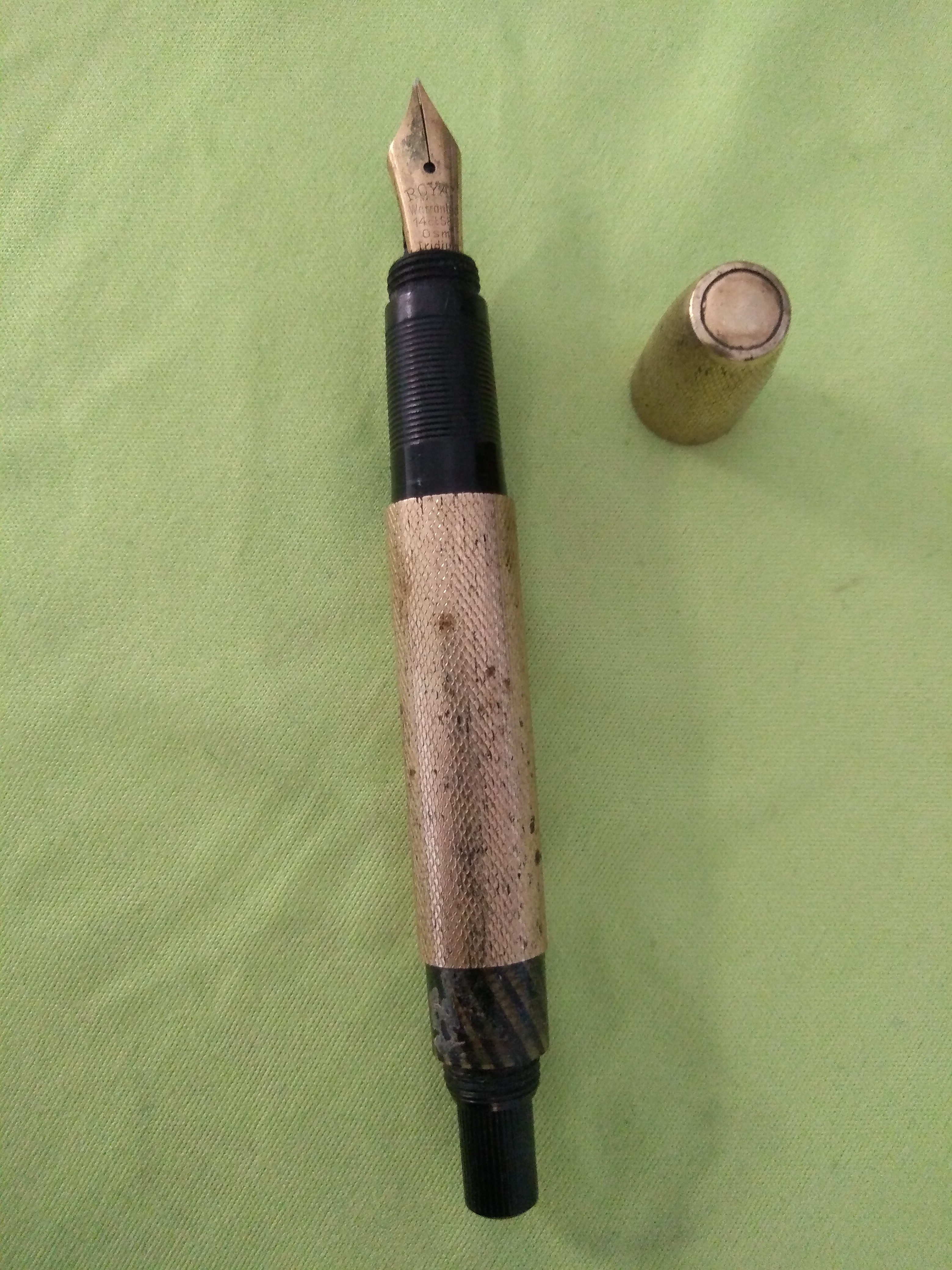 - pennino originale oro 14 ct.: saldato al colletto dove si era spezzato durante l'estrazione ( operazione gentilmente realizzata dall'artigiano che mi ha saldato il pennino della Waterman 42 )