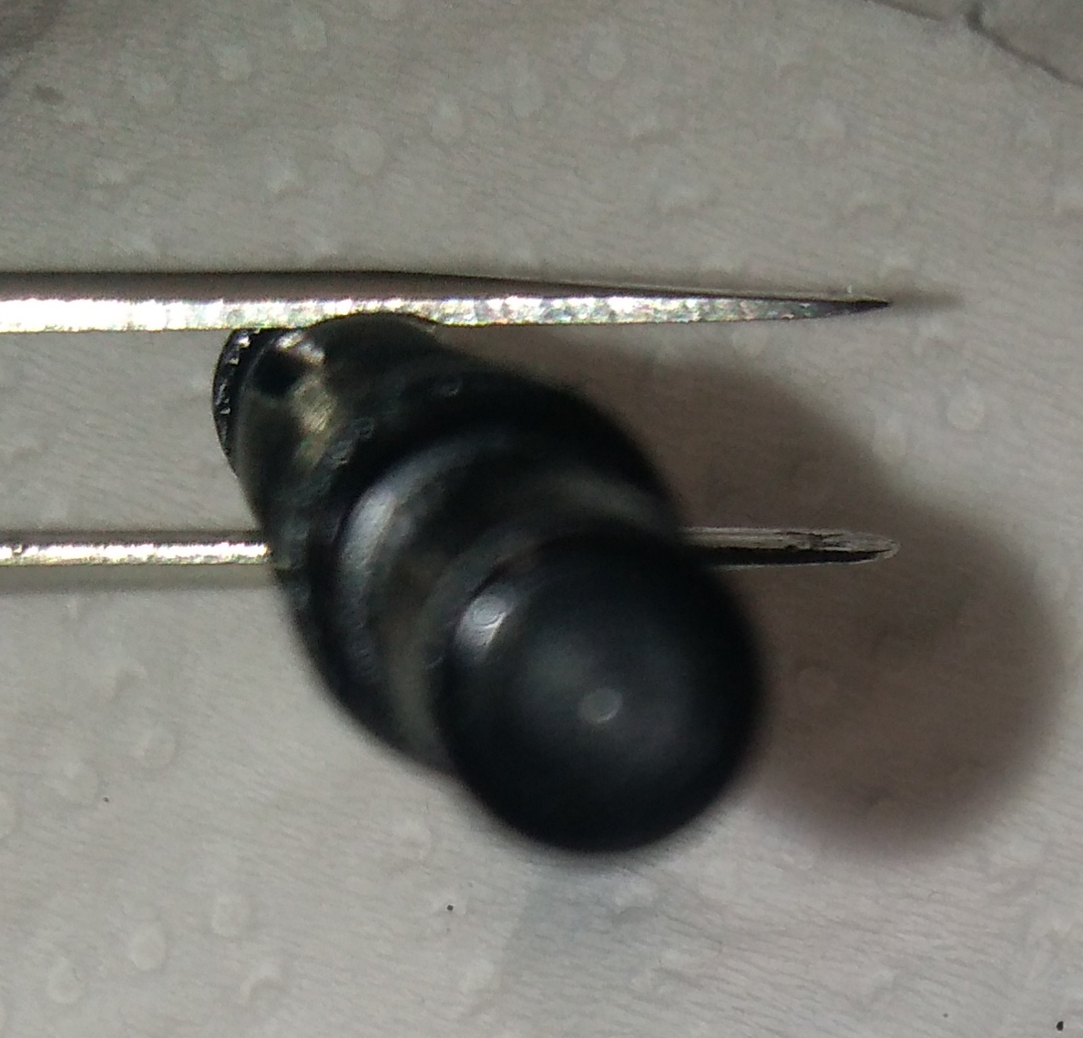 2) il pomello del fondello, in cima all'alberino, che va a girare in corrispondenza dell'ogiva di copertura, ha una vitina microscopica ( o forse un chiodino?) inserita a lato ma non si svita e battendo non esce , non ne capisco il senso, in quanto il fondello non deve essere avvitato all'ogiva di copertura ( tipo fondello omas 565 ), nella Royal il cappuccio del fondello si inserisce a pressione ed inoltre vi è la laminatura esterna senza fori che non permette operazioni di avvitamento.