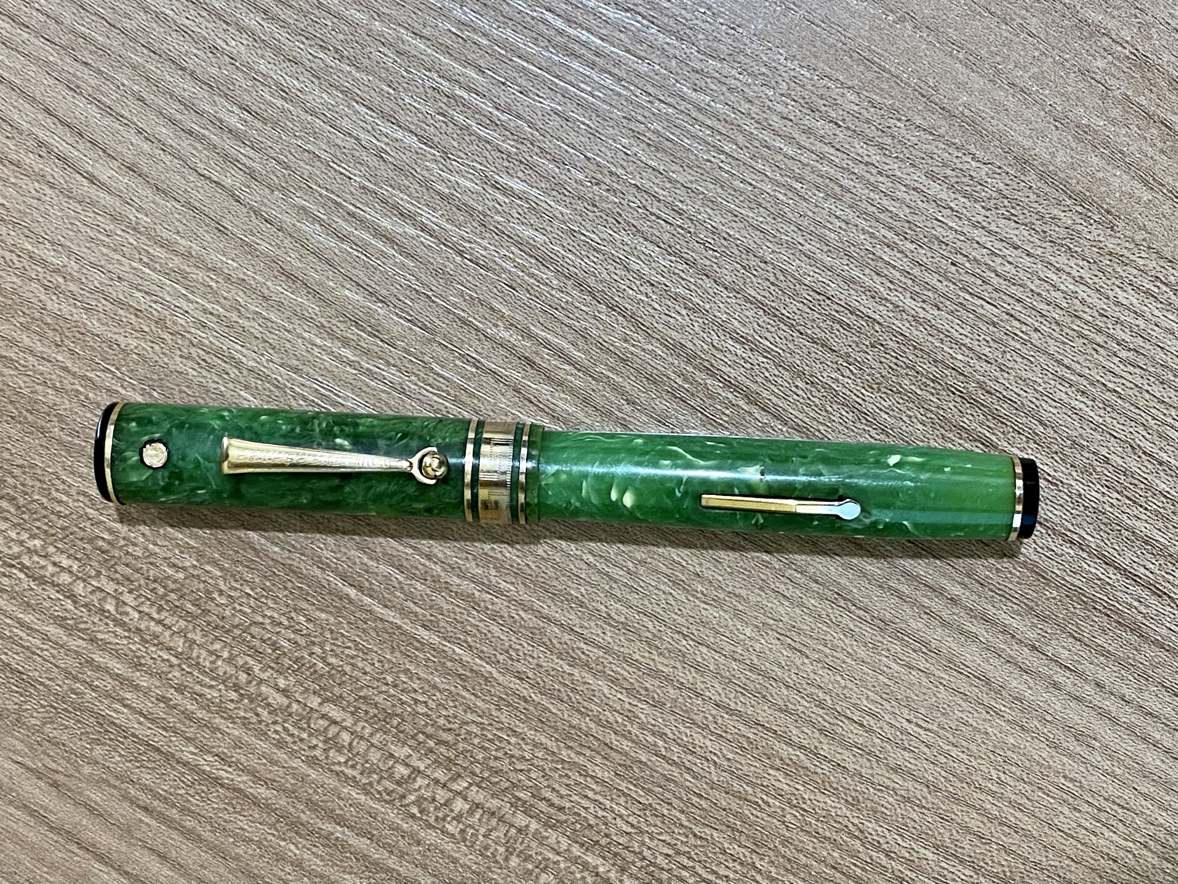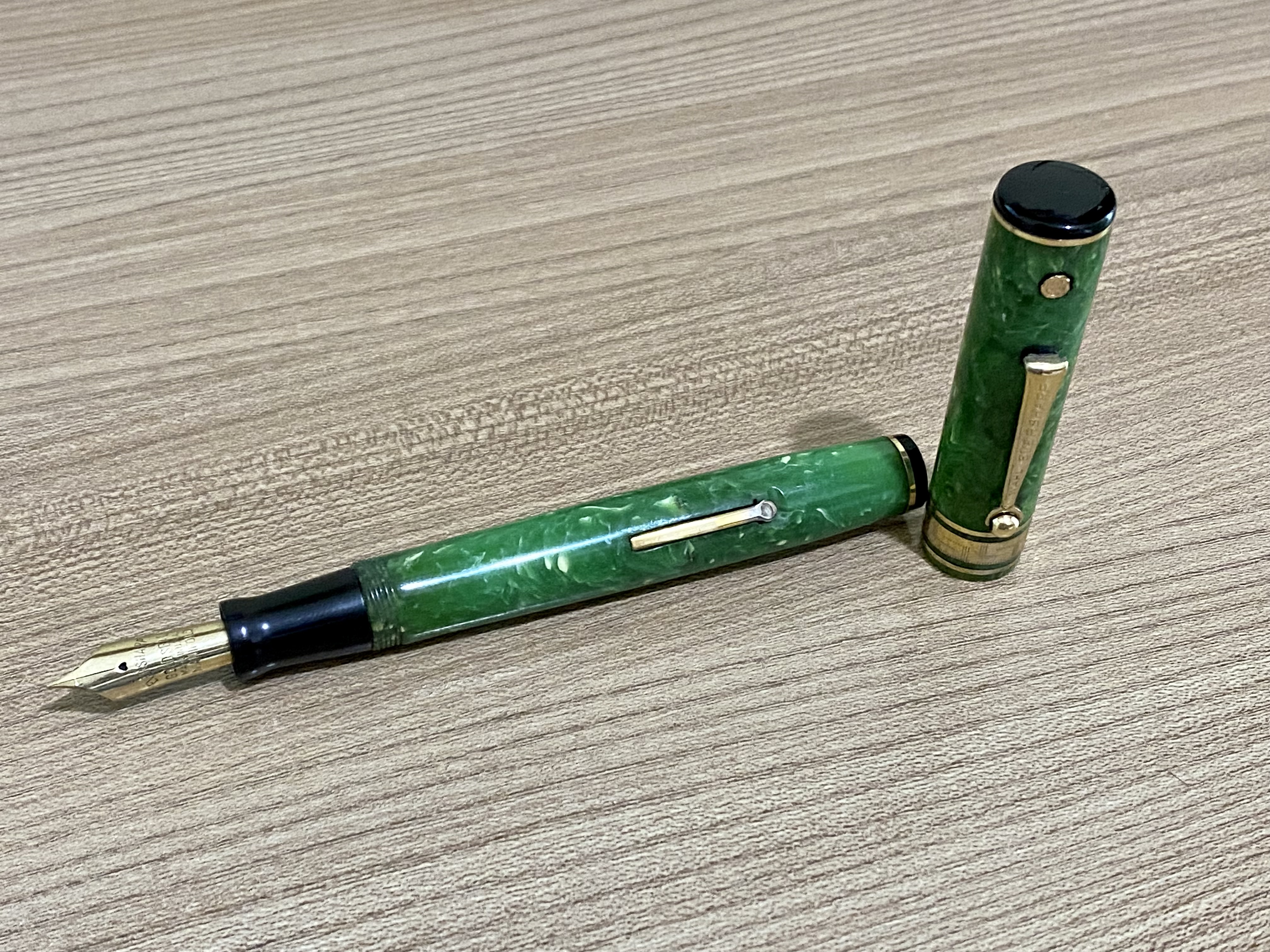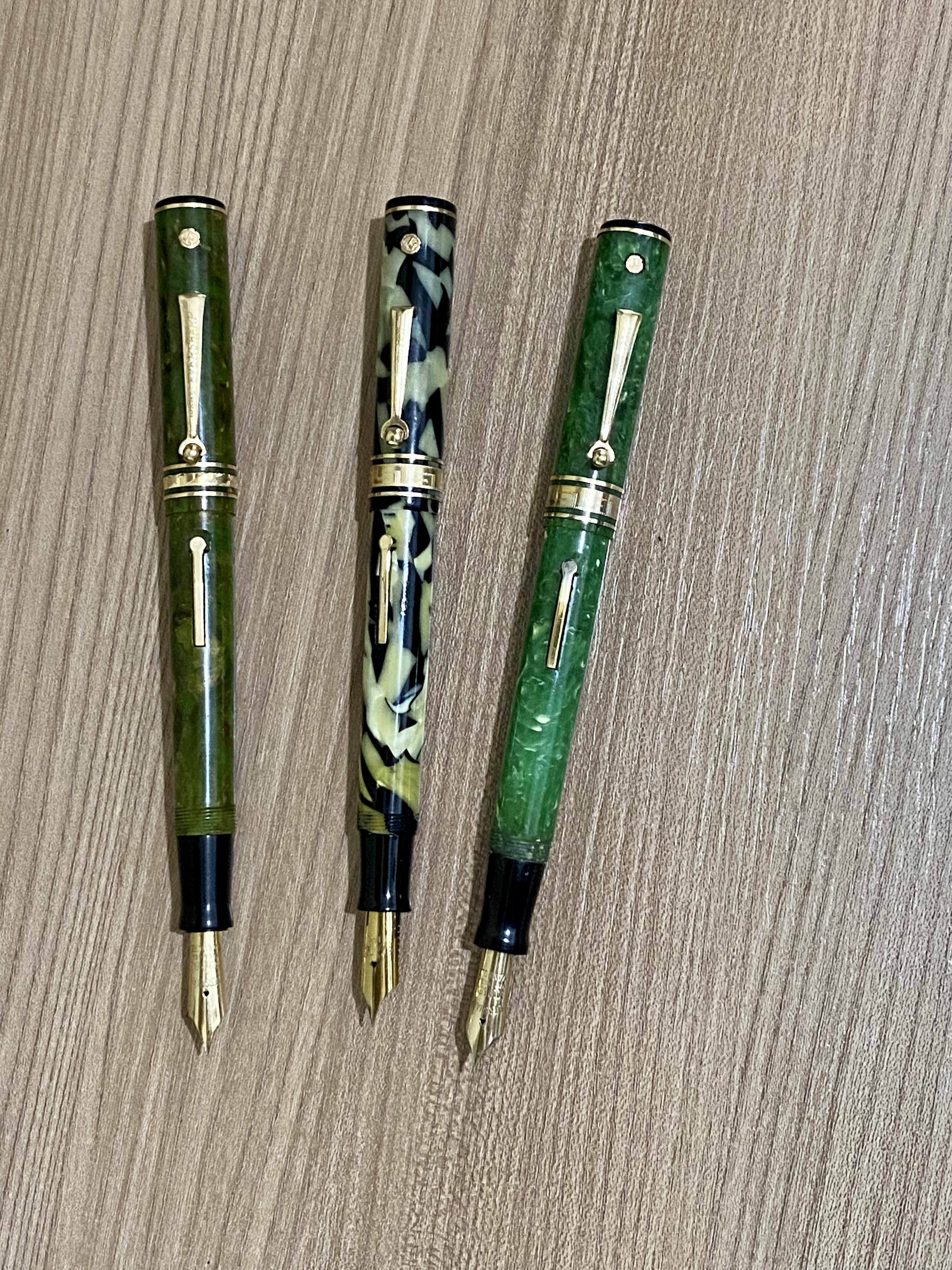 L'ultima arrivata è la Jade Green, un colore non facile perché tende a virare nelle tonalità più scure del verde. Su questo esemplare invece la celluloide ha tenuto tutto sommato bene, presentando solo una lieve differenza di tonalità tra il fusto ed il cappuccio che risulta leggermente più scuro.