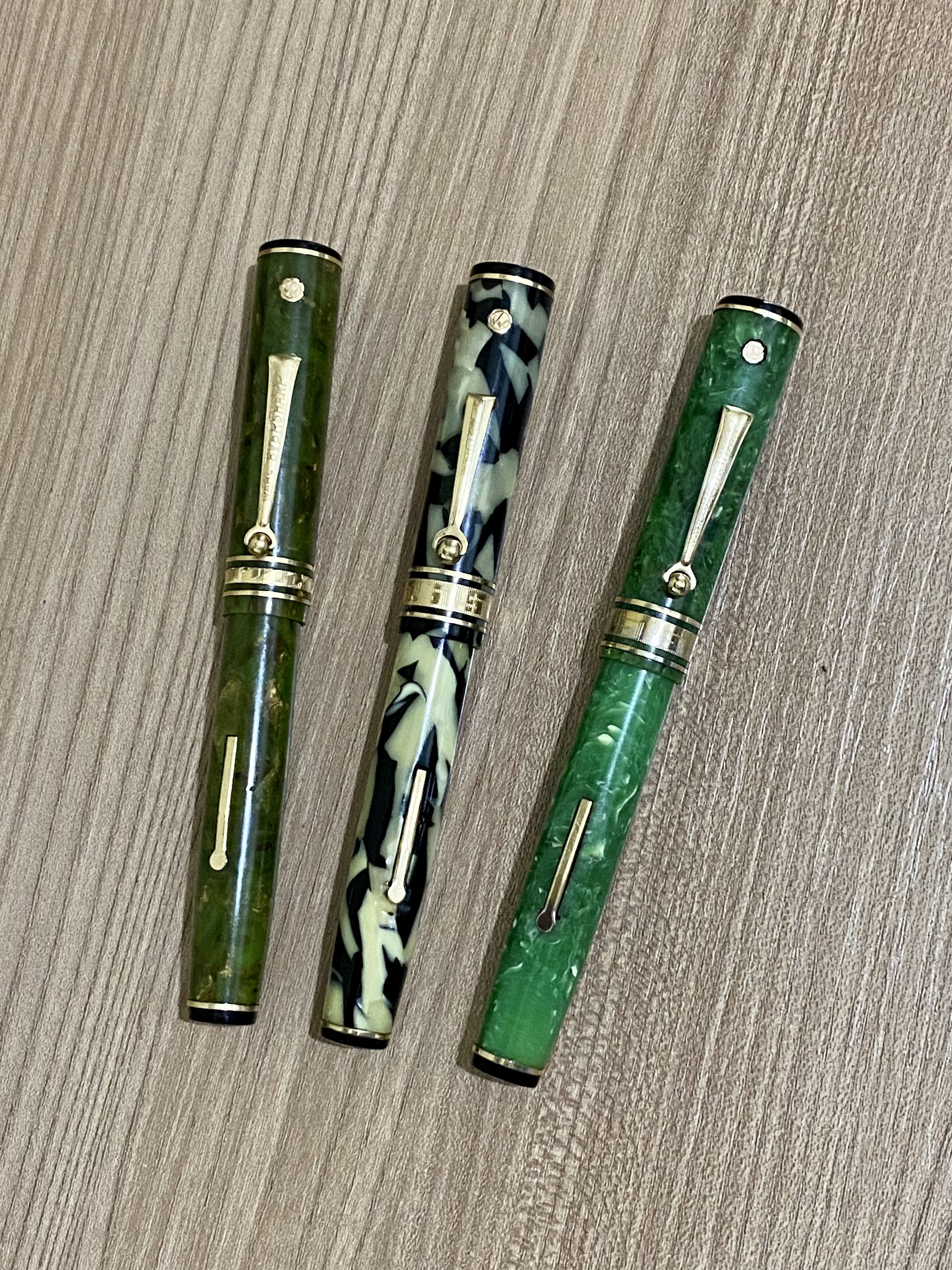 Agli inizi di questa mia passione, letteralmente esplosa non più di sei anni fa, pensavo (ingenuamente) di essere immune a certe strane manie collezionistiche e capace di non avere non più di un esemplare di una penna che amassi particolarmente; mai avrei pensato di metter in fila la stessa penna in più colori. Ed invece eccoci qui, siamo già a tre... ma come fare a resistere a questo capolavoro di eleganza e modernità introdotto da Wahl nel lontano 1928, una penna con uno stile sinora ineguagliato, la più bella flat top dalle dimensioni che ne fanno una stilografica importante ma non mastodontica.