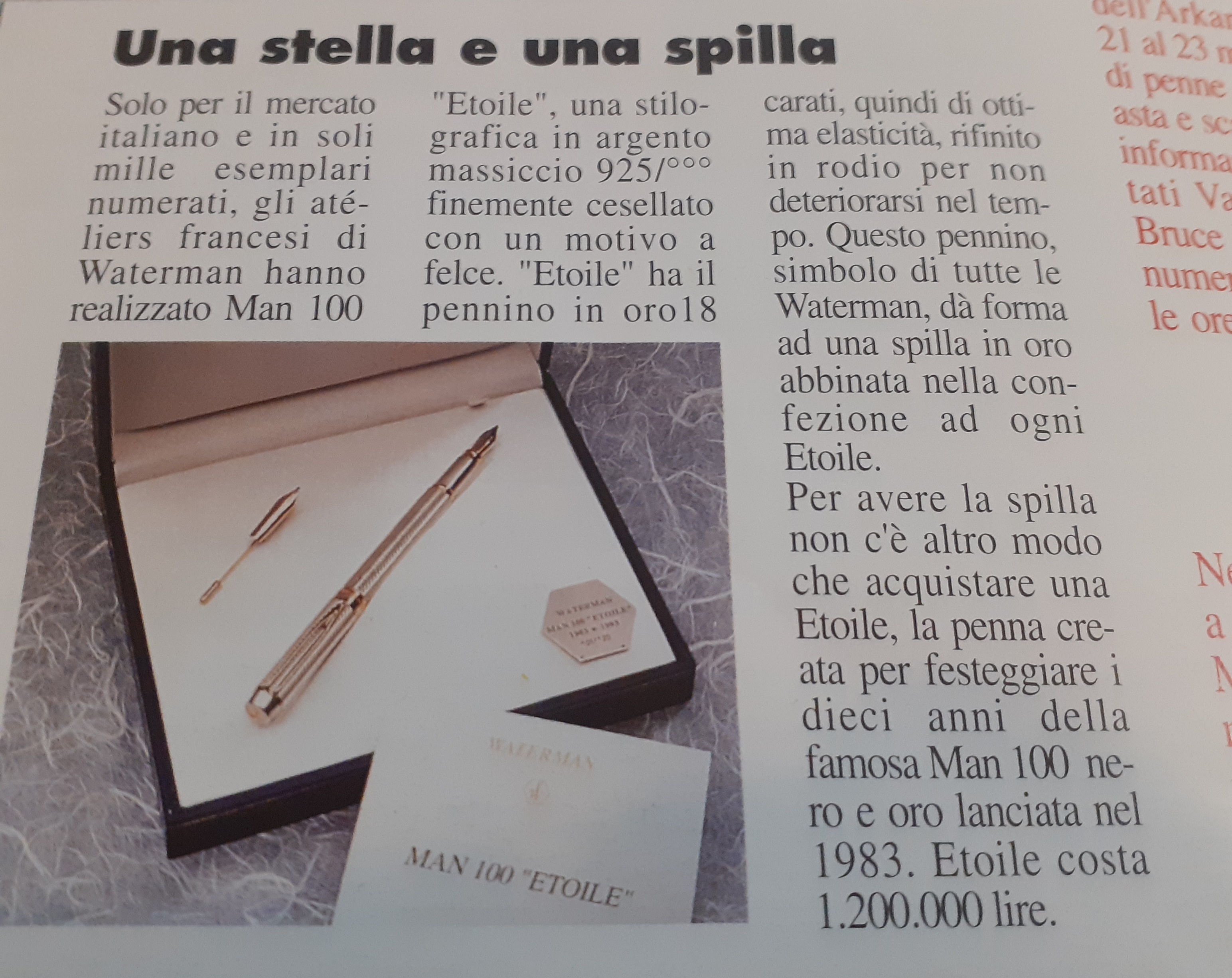 Nel 1993, per celebrare il decimo anniversario di produzione di questa fortunata penna del centenario, Waterman produsse quella che reputo essere una delle più eleganti penne del panorama moderno, la Man 100 Etoile.