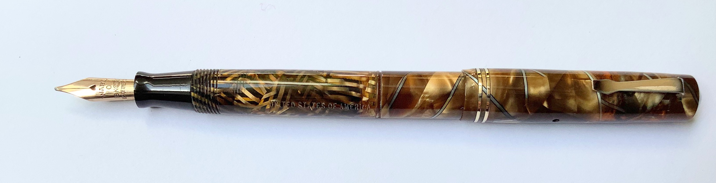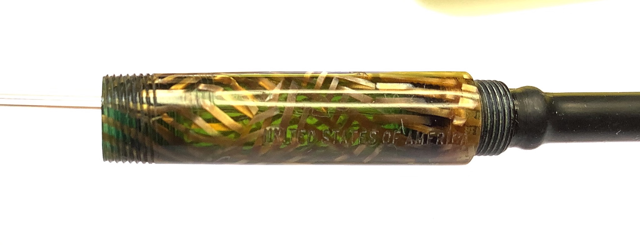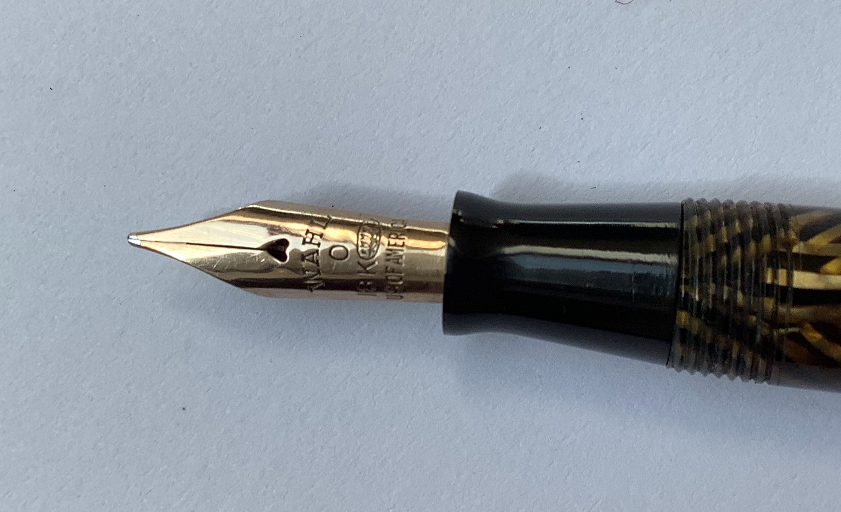 Inserisco questo foto ravvicinata del marchio sul pennino e questa interessante discussione su una penna identica a questa e con il medesimo tipo di pennino https://www.fountainpennetwork.com/foru ... or-export/