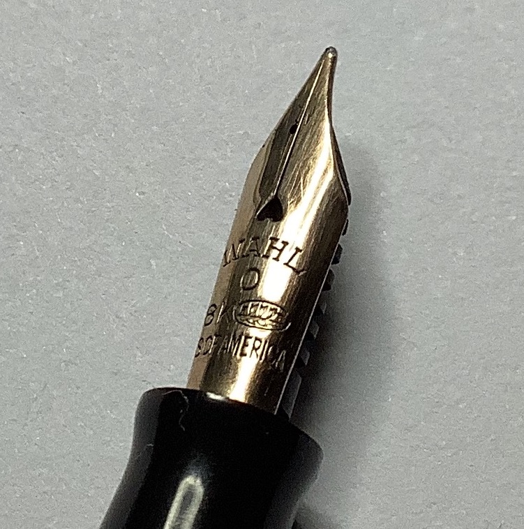 Il pennino Wahl nr. 0 è in oro 18 carati moderatamente flessibile, quasi sicuramente rivolto al mercato francese o dei Paesi Bassi (è anche presente un piccolo marchio - Hallmark - per il titolo ufficiale dell'oro)