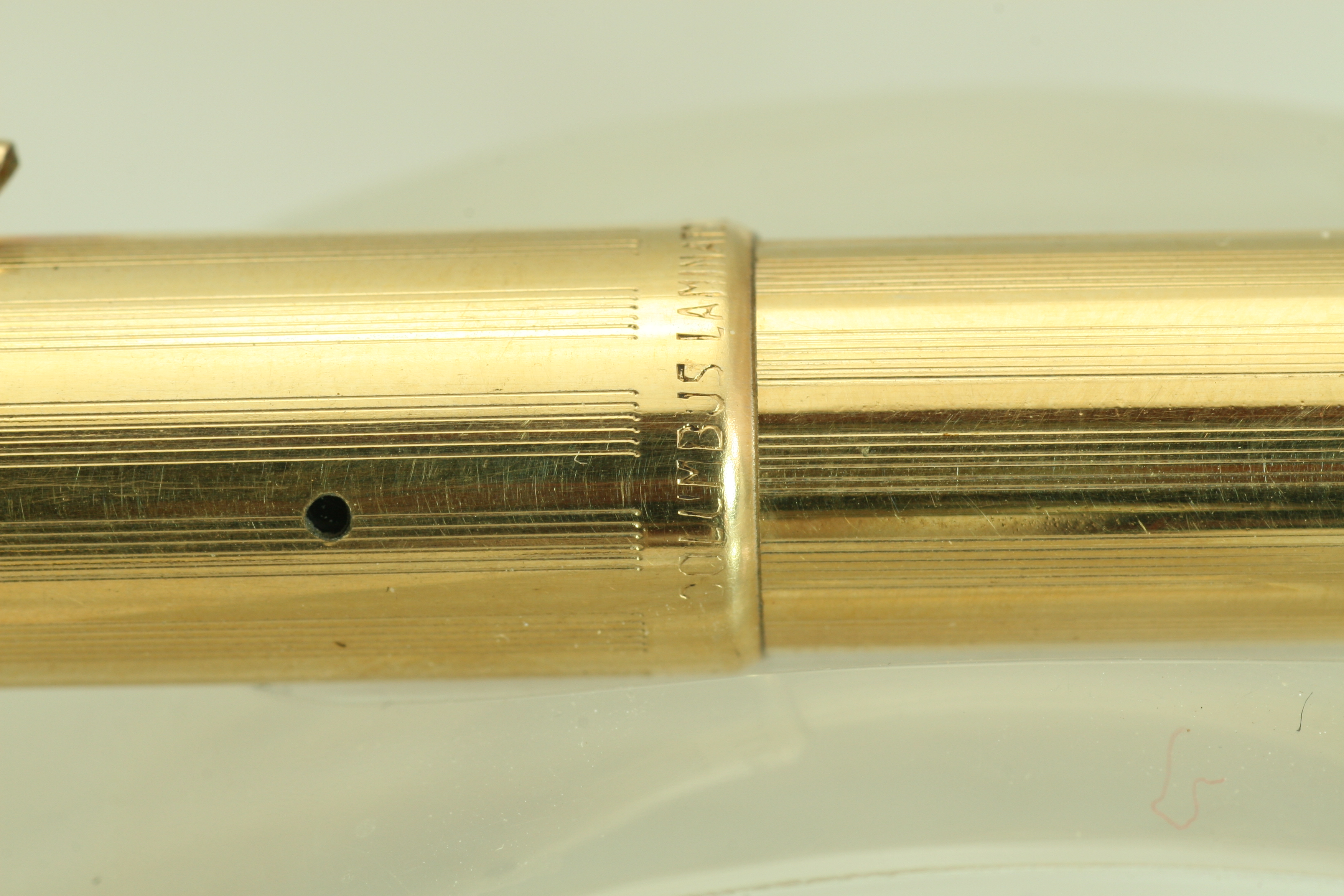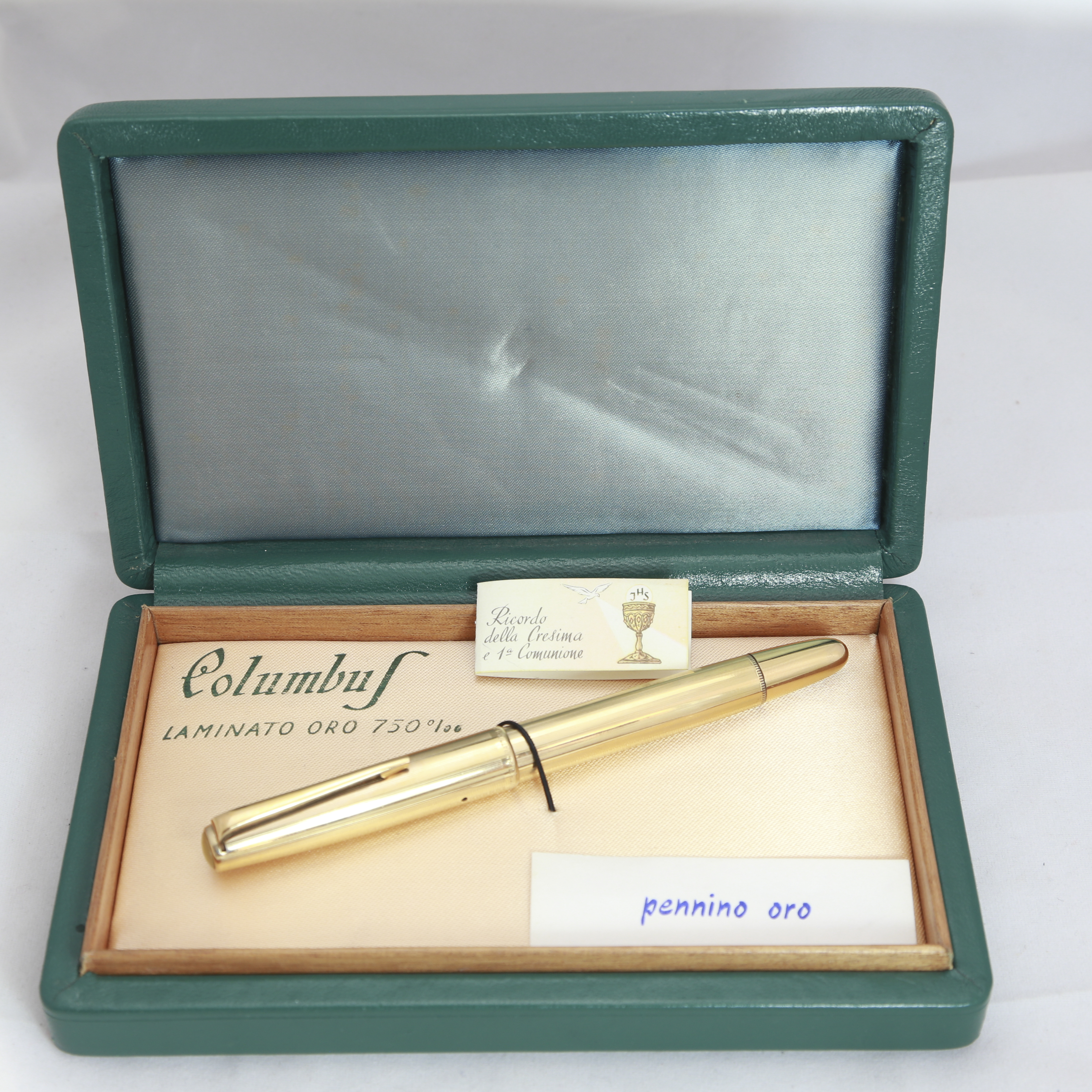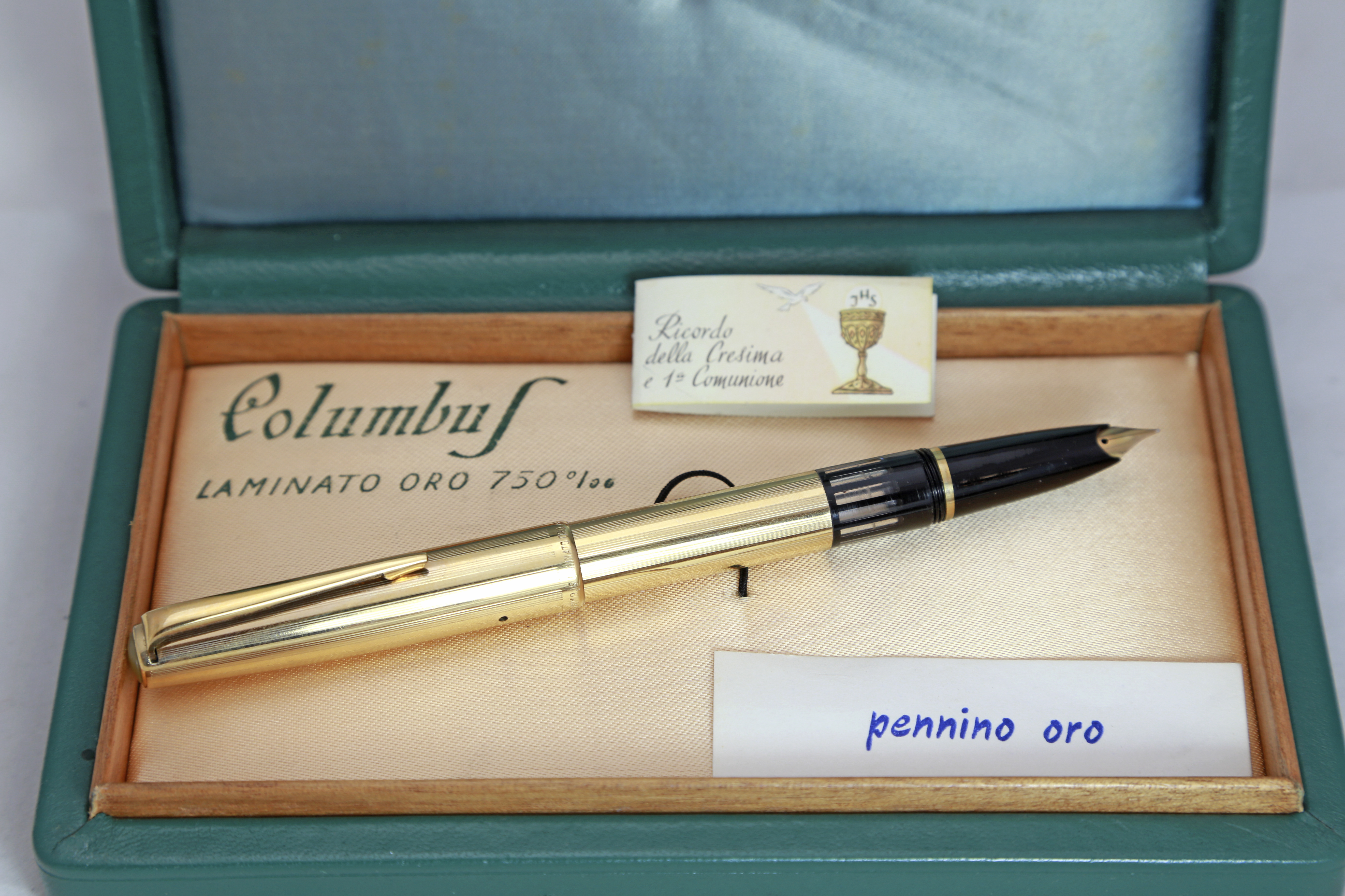 Anche Columbus non fu esente dal perseguire le mode del momento ed ecco questo modello 65 laminata, evidentemente destinata a regalo per la prima Comunione, che ricorda molto, almeno quando è chiusa, la Parker 51 Insignia.