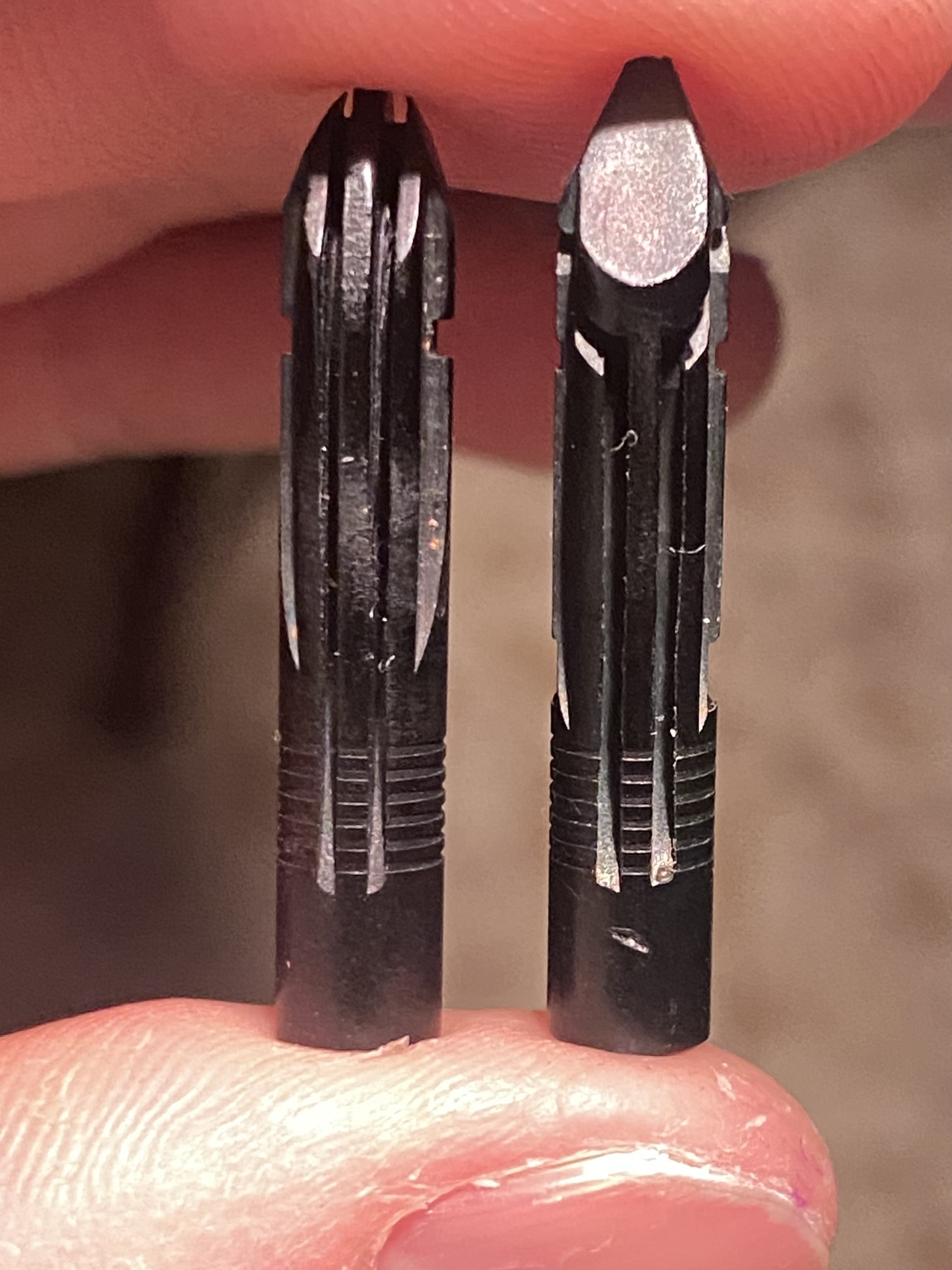 Stefano, qui la discussione alla quale , forse, ti riferivi https://www.fountainpennetwork.com/foru ... a-skyline/ , dove si può dedurre che originariamente venne adottato l'alimentatore di destra nella tua foto (in effetti sulle mie Skyline ho sempre trovato questo) ed il mio consiglio, per quel che può valere, è di usare proprio questo modello (non per altro, ma perchè funziona veramente molto bene a patto di avere montato anche il tubicino sulla testa del'alimentatore).