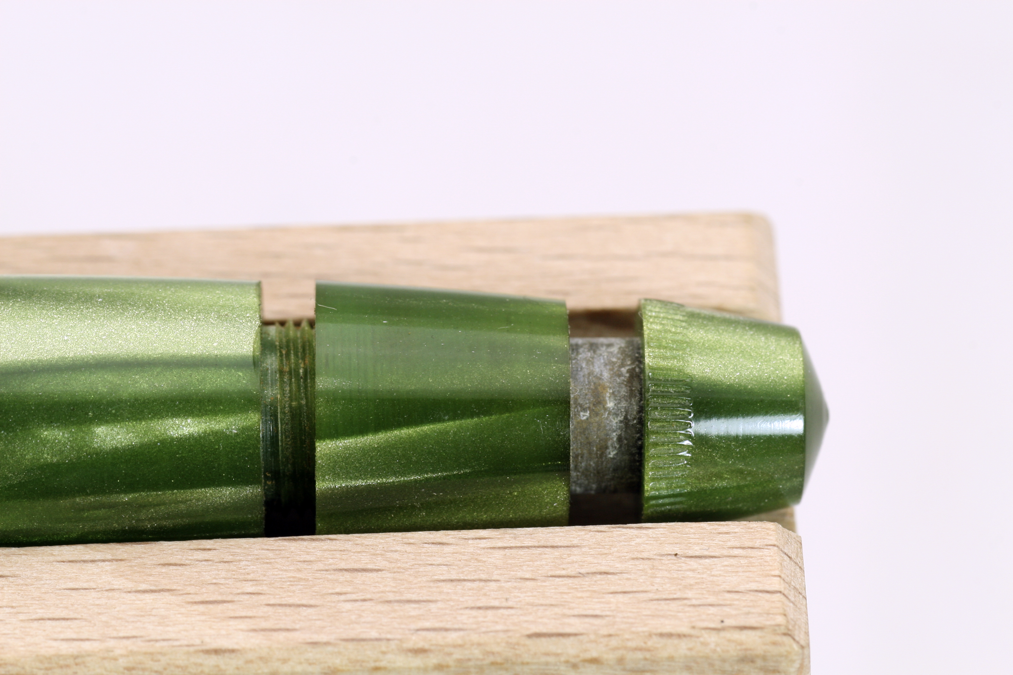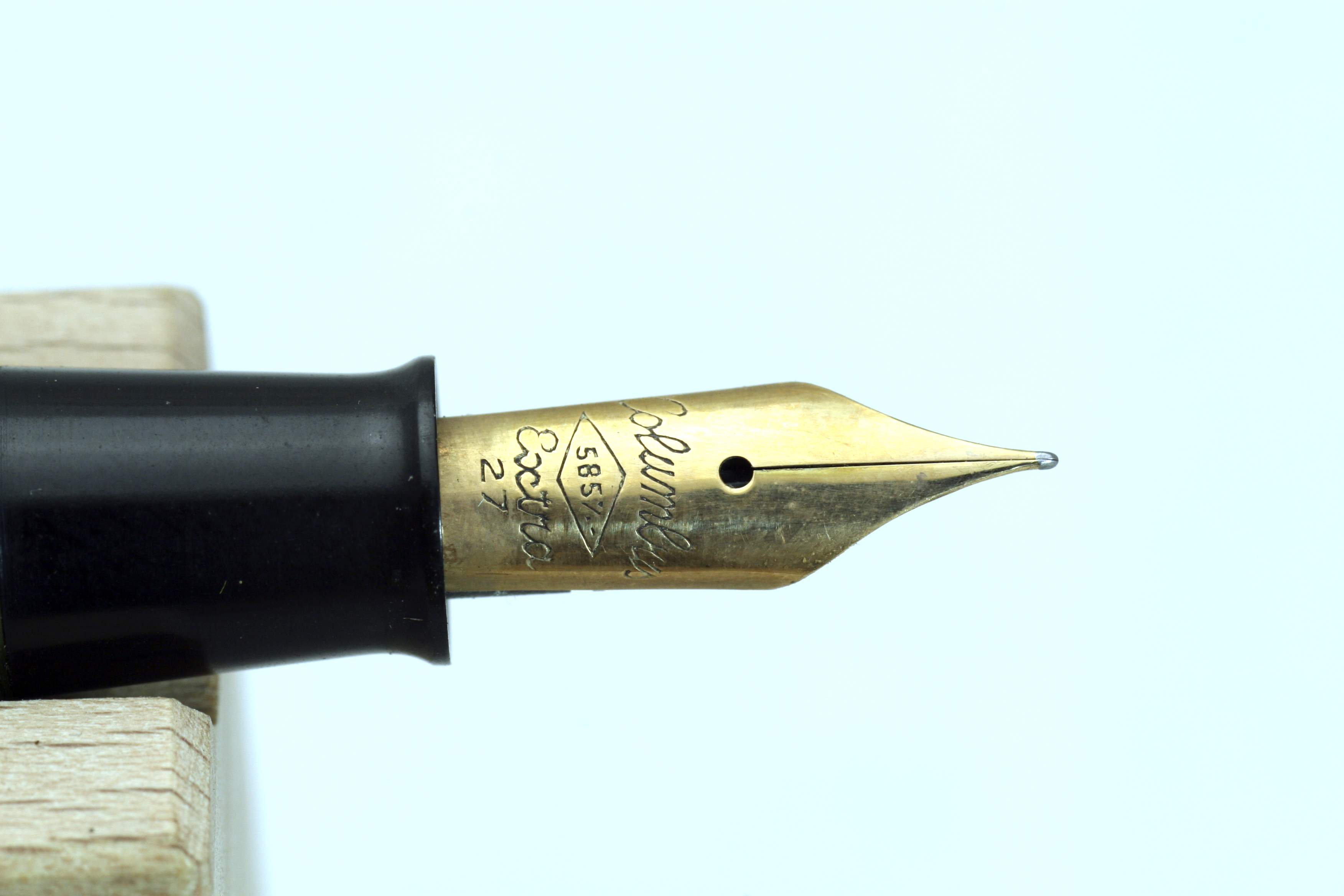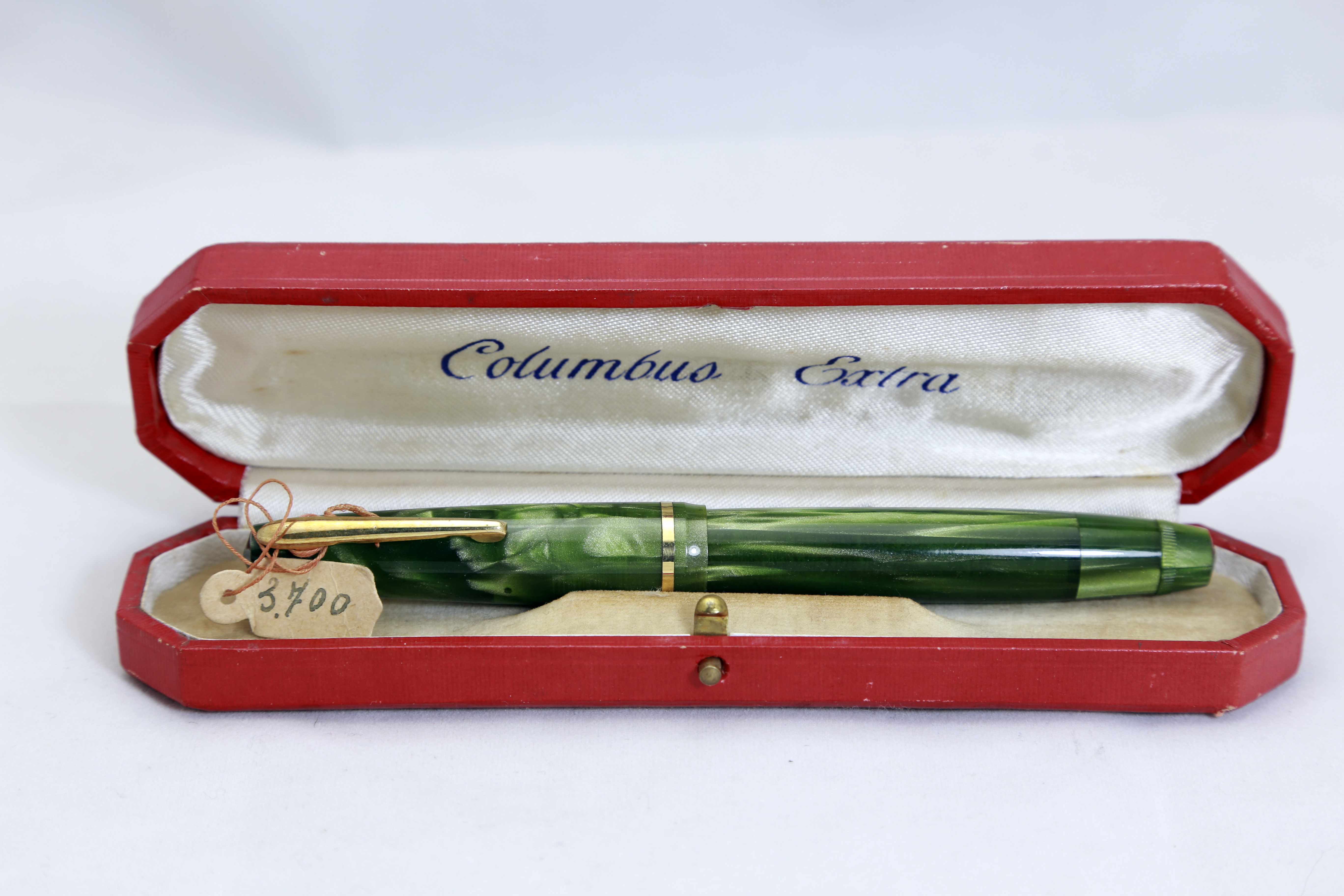 La penna dovrebbe essere databile circa 1950 ed è particolare il caricamento a pulsante di fondo con un meccanismo che ne consentiva l'azionamento direttamente tramite il fondello svitabile parzialmente.