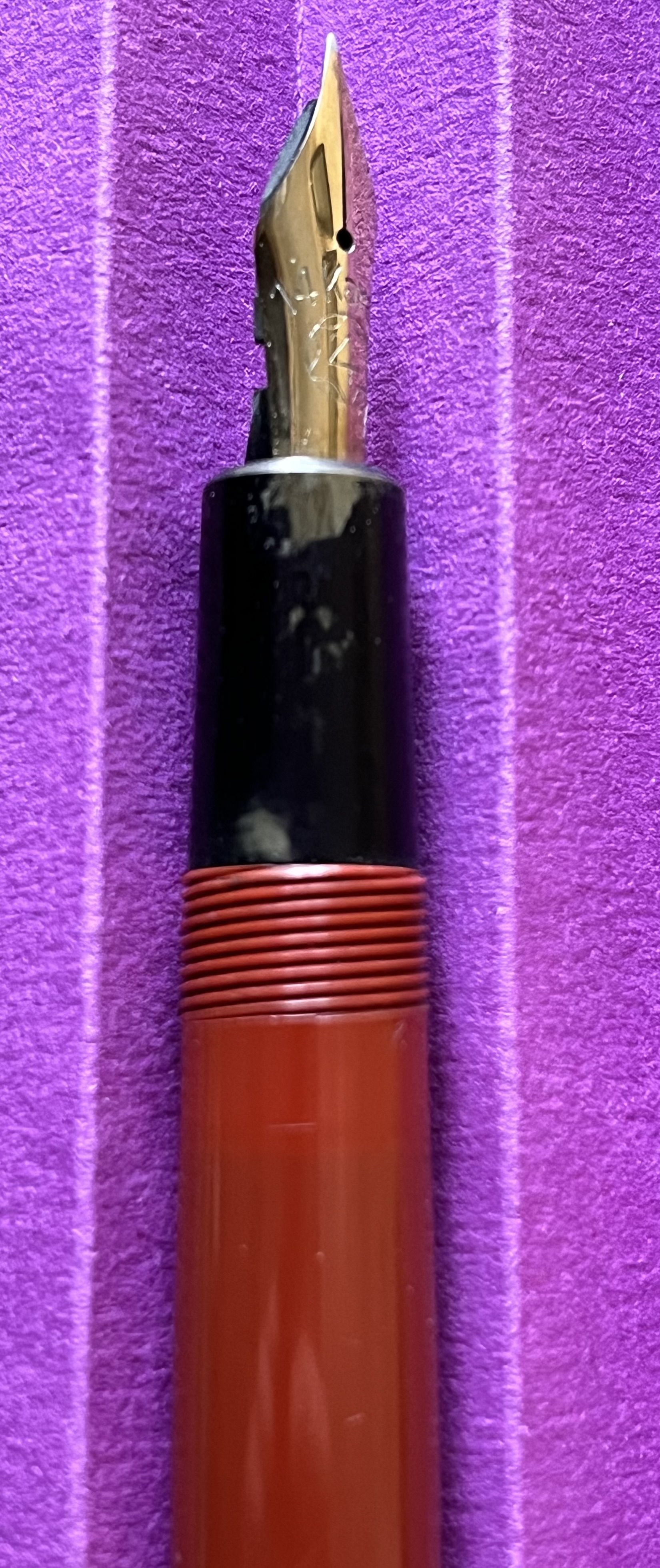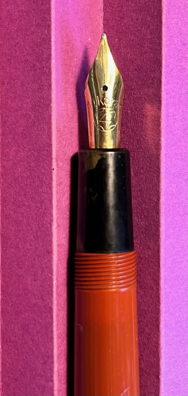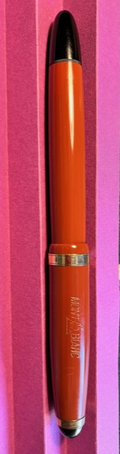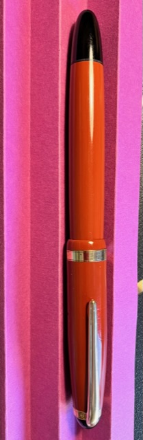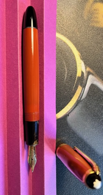 Buonasera ho trovato su ebay la seguente Montblanc Coral Red 214 danese. Le foto non mostravano i segni sull'impugnatura ne l'alimentatore inquesto 'cromia'