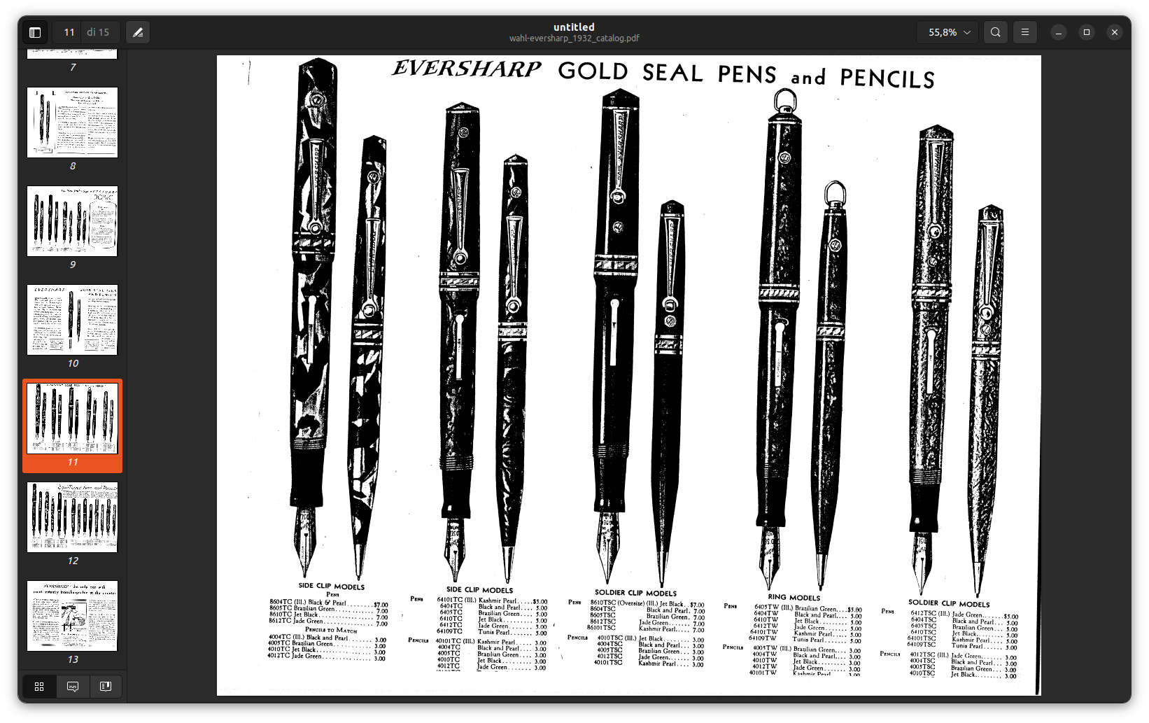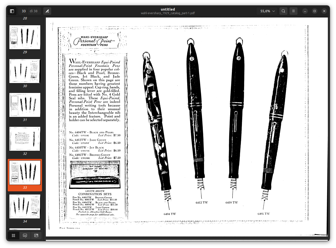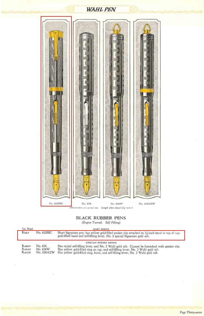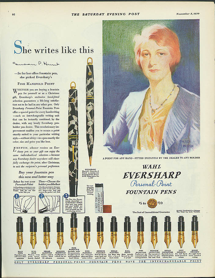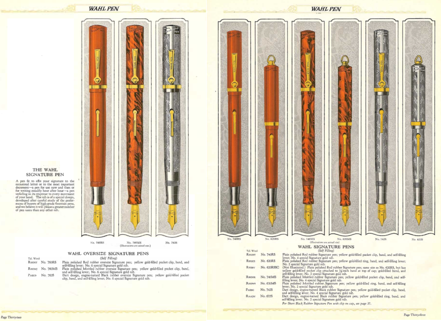 Il modello Wahl Signature Pens fu così pubblicizzato nel catalogo del 1925 con due pagine ad esso dedicate.