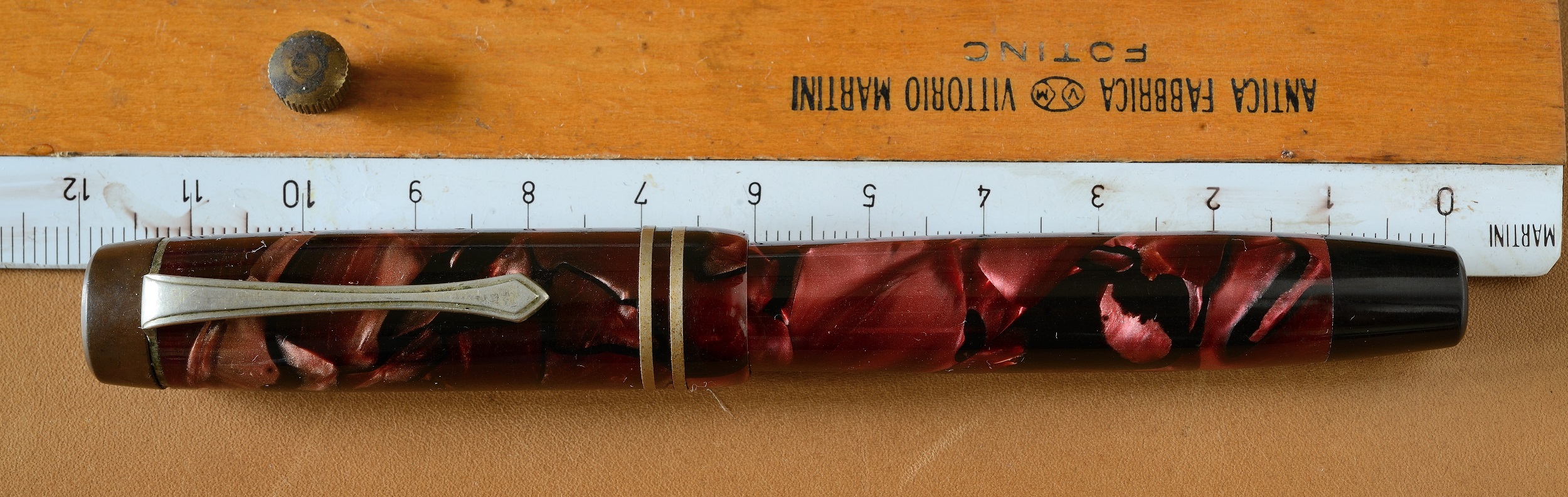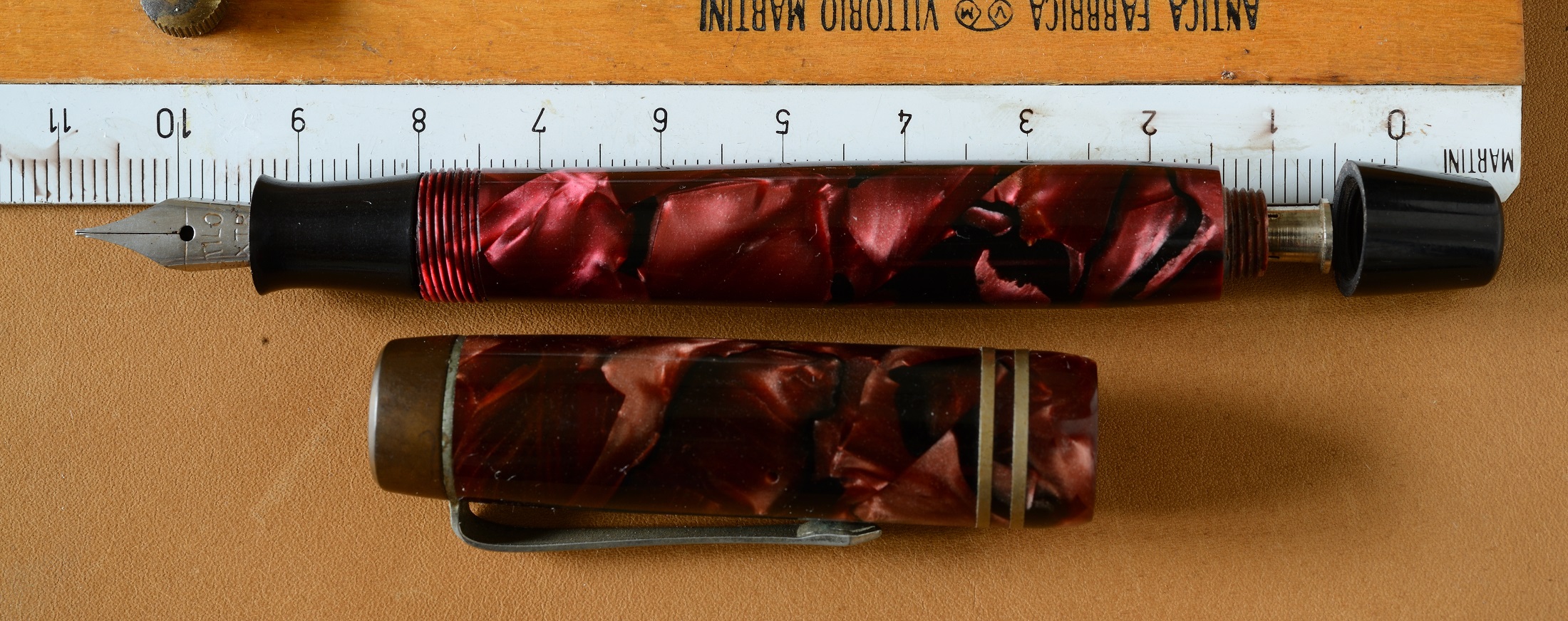 Ebanite al top del cappuccio leggermente solfurata e celluloide, sempre del cappuccio, leggermente virata.