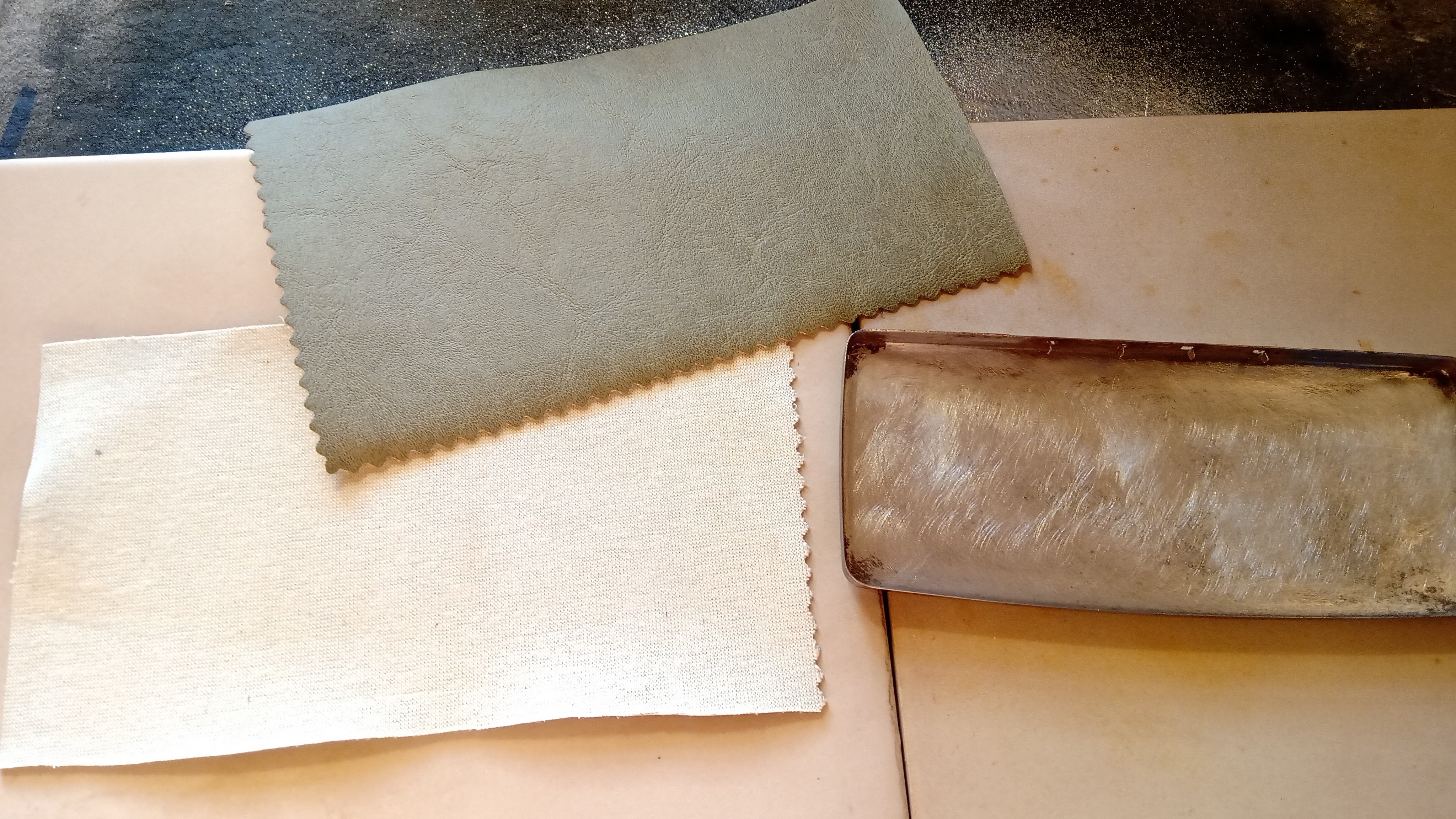 Infine è stata tolta tutta la similpelle che era praticamente marcia e che ricopriva l'intera superficie di lamiera arrugginita...