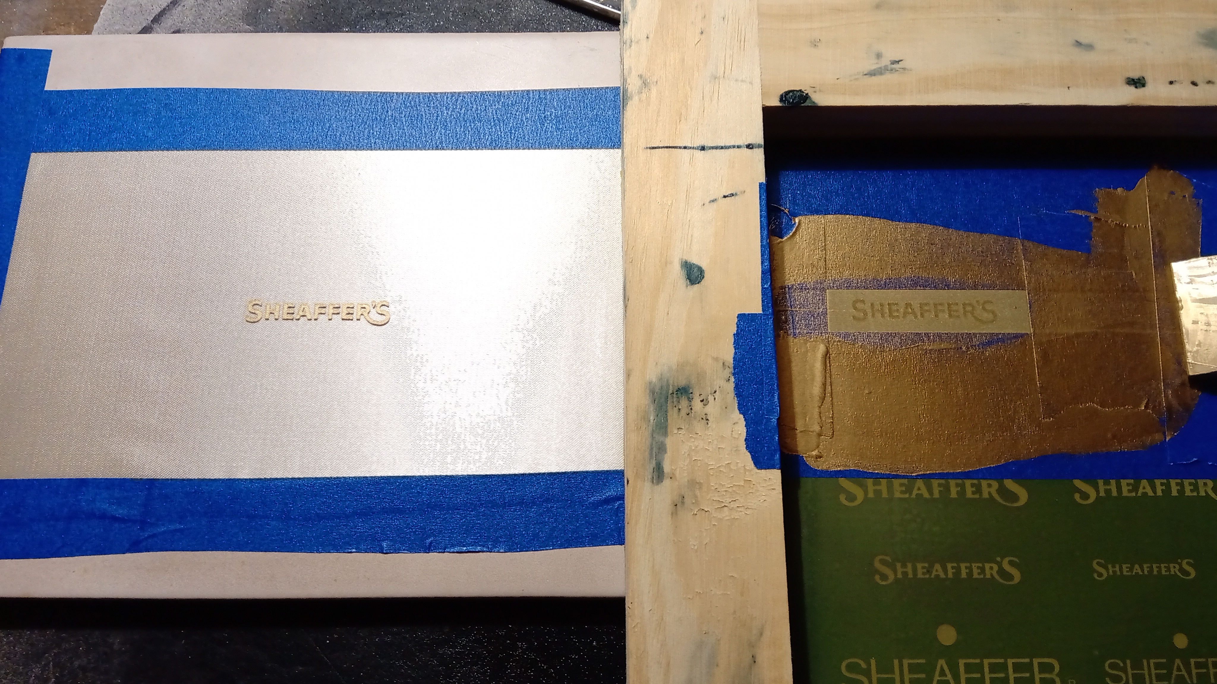 ora resta da stampare il logo del marchio, cosa che faremo con molta cura (sull'errore non si torna indietro) con il metodo serigrafico e un inchiostro vinilico...