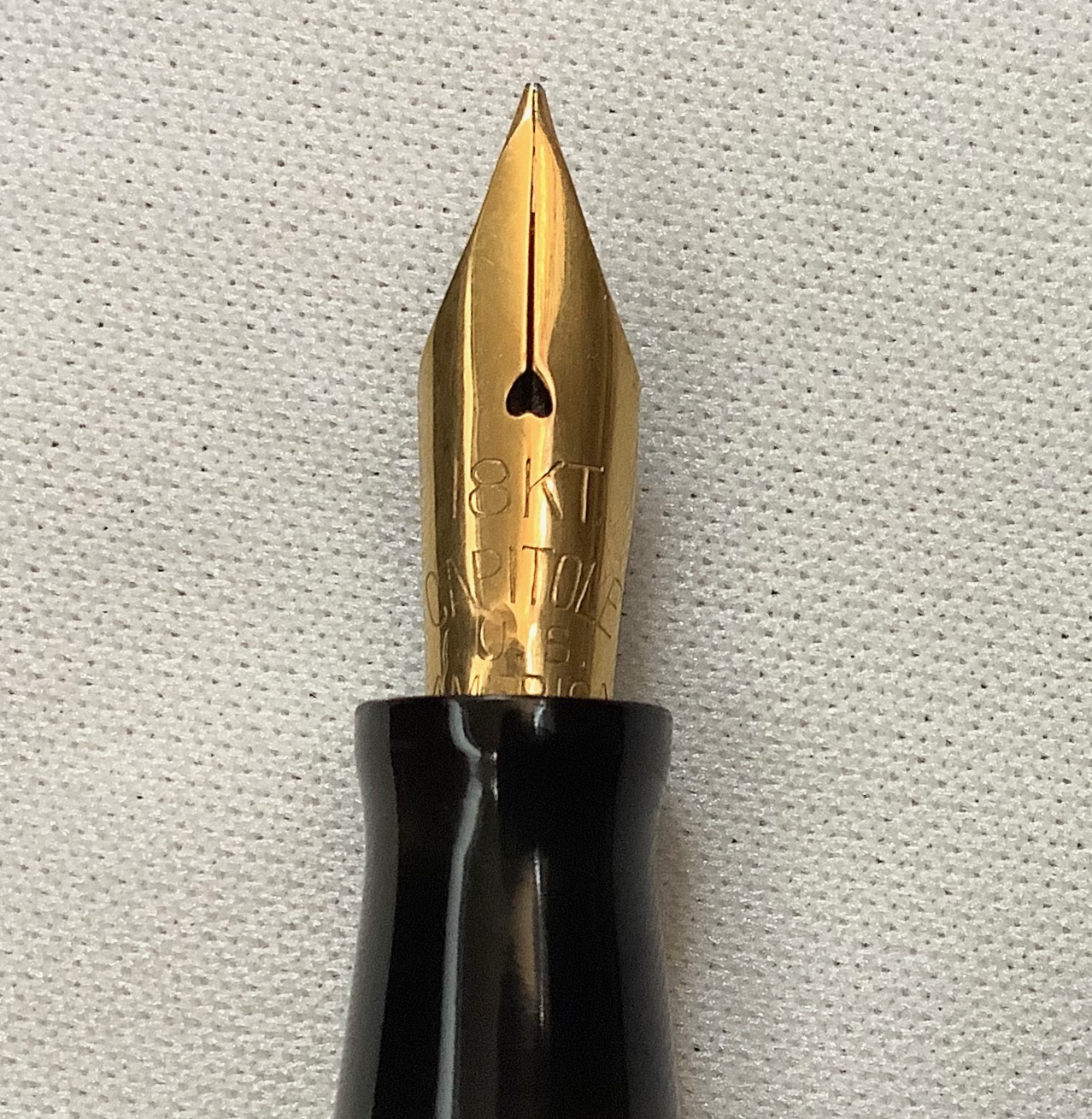 C'è da dire che tutte le "Capitol" e le "Capitol Cabinet" recano inciso la dicitura NEW YORK / MADE IN USA e montano un bel pennino A.L.CO. 14 carati, mentre nelle Capitole la dicitura è NEW YORK / UNITED STATES OF AMERICA ed il pennino è un 18 carati marchiato CAPITOLE . La mancanza della parola "MADE" , i 18 kt e la parola stessa CAPITOLE , potrebbe (fortemente) indicare una produzione sul suolo francese per il mercato interno . Tra l'altro Capitole è la traduzione in francese del Capitol inglese/americano.