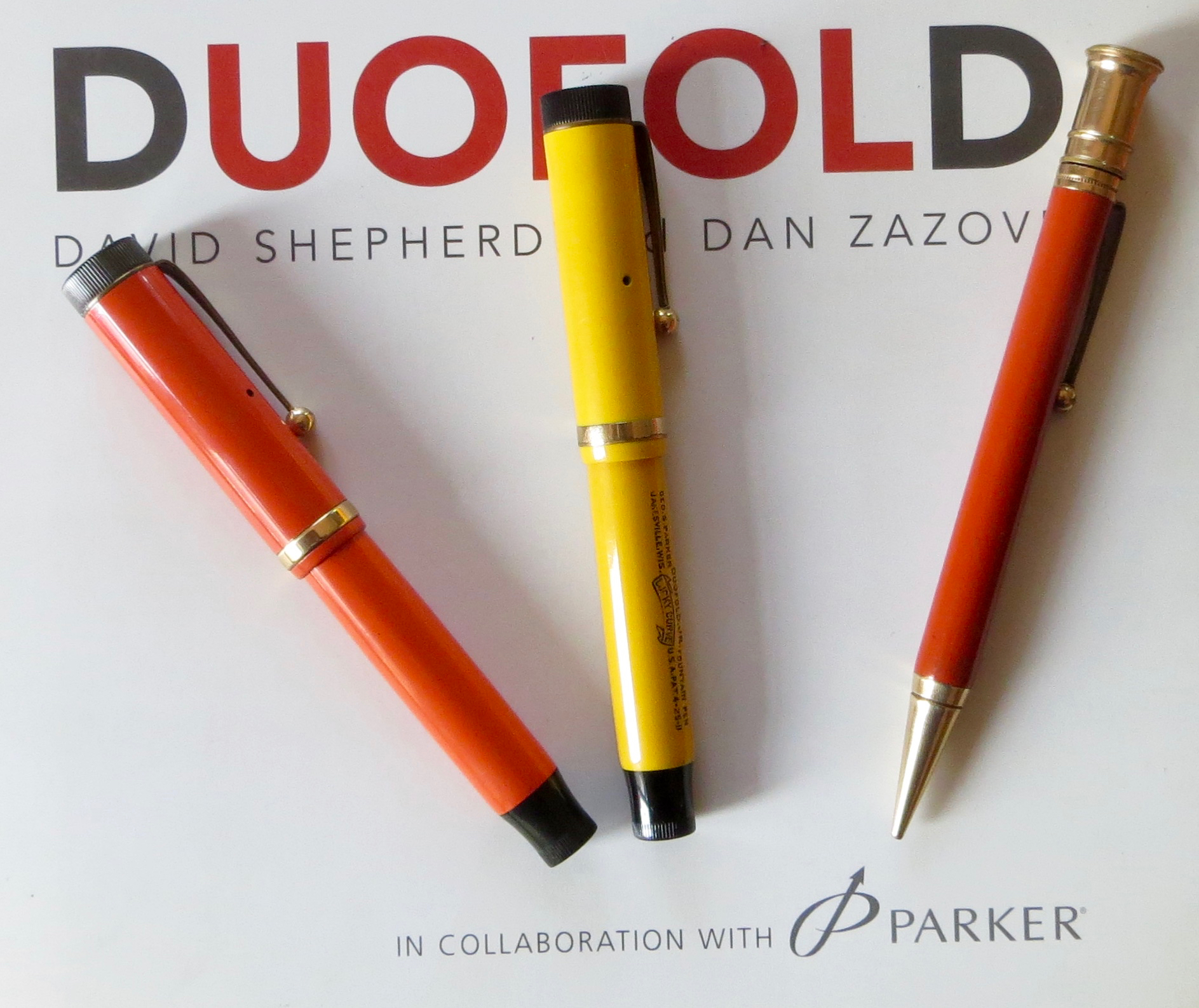 1924/25 Red Hard Rubber penna e matita e 1927 Mandarin Yellow (o Chinese Yellow) Permanite