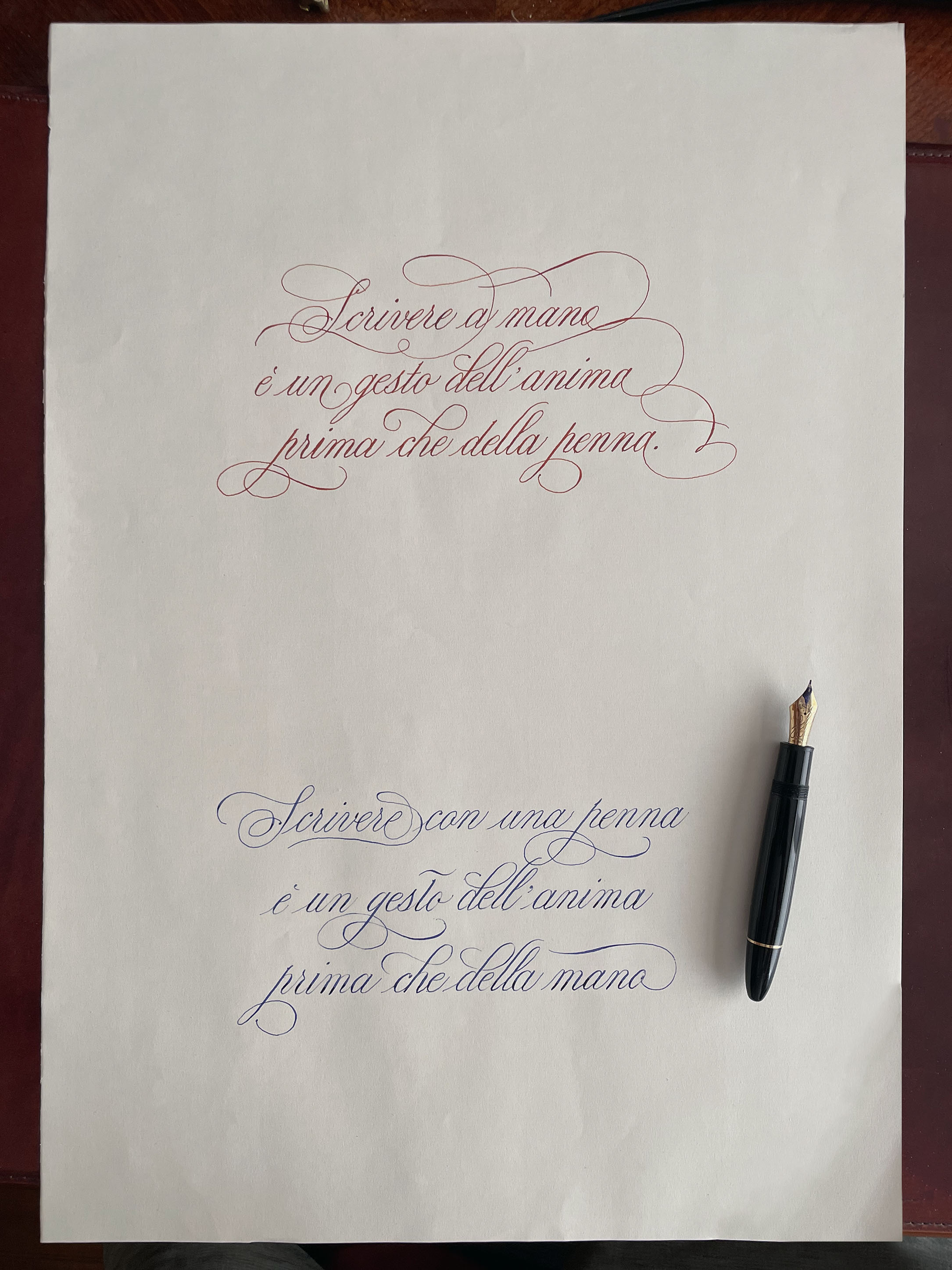Per festeggiare in qualche modo il fatto che la mia Calligraphy "eppur scrive" dopo la caduta, vorrei usare uno die miei fogli buoni per buttar giù un'operetta calligrafica. Ho mezzo pensato un pensierino per l'occasione, ma mi é venuto in due versioni, che dicono di fatto la stessa cosa, ma in due modi diversi.