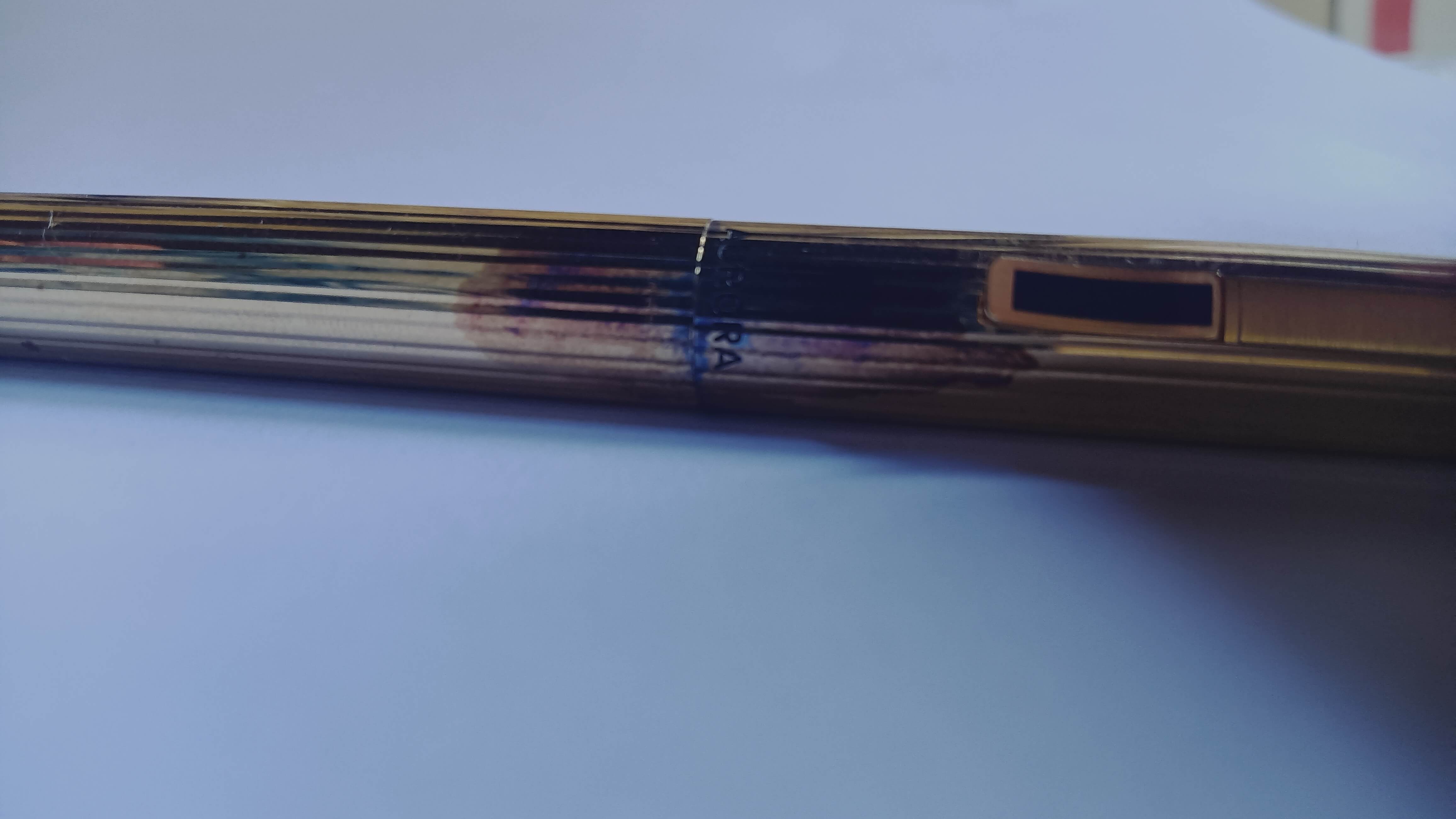 Ciao, recentemente ho rinvenuto una stilografica Aurora Hastil appartenuta a mio nonno. Sono quasi certo che non sia mai stata usata, però ha sul cappuccio e suo corpo esterno le macchie che si vedono (spero) nelle foto.