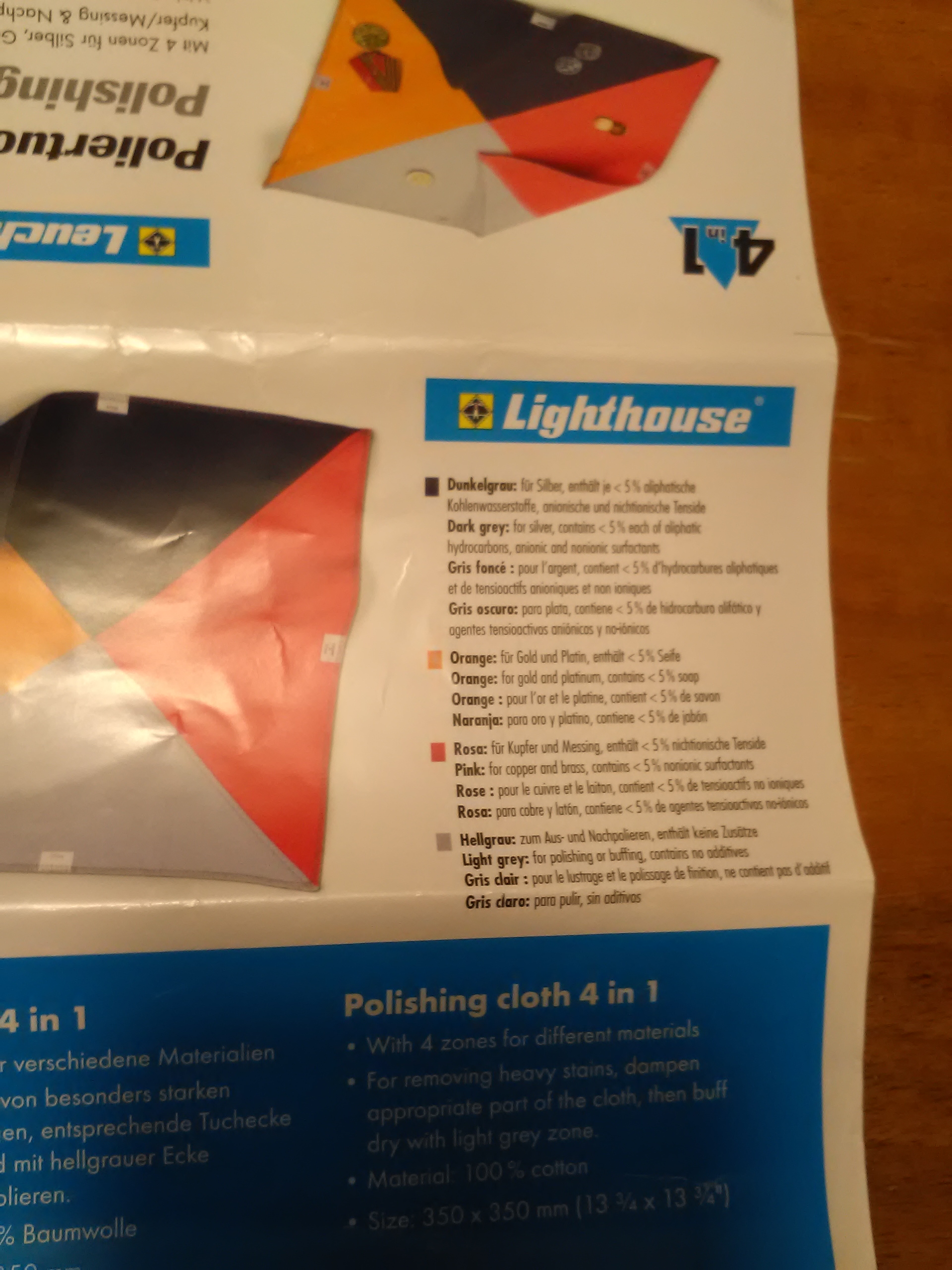 Se lo trovi prova con un panno da gioielliere, serve per pulire gli oggetti in oro e argento e altro. Il panno è diviso in settori identificati da diversi colori, per esempio questo