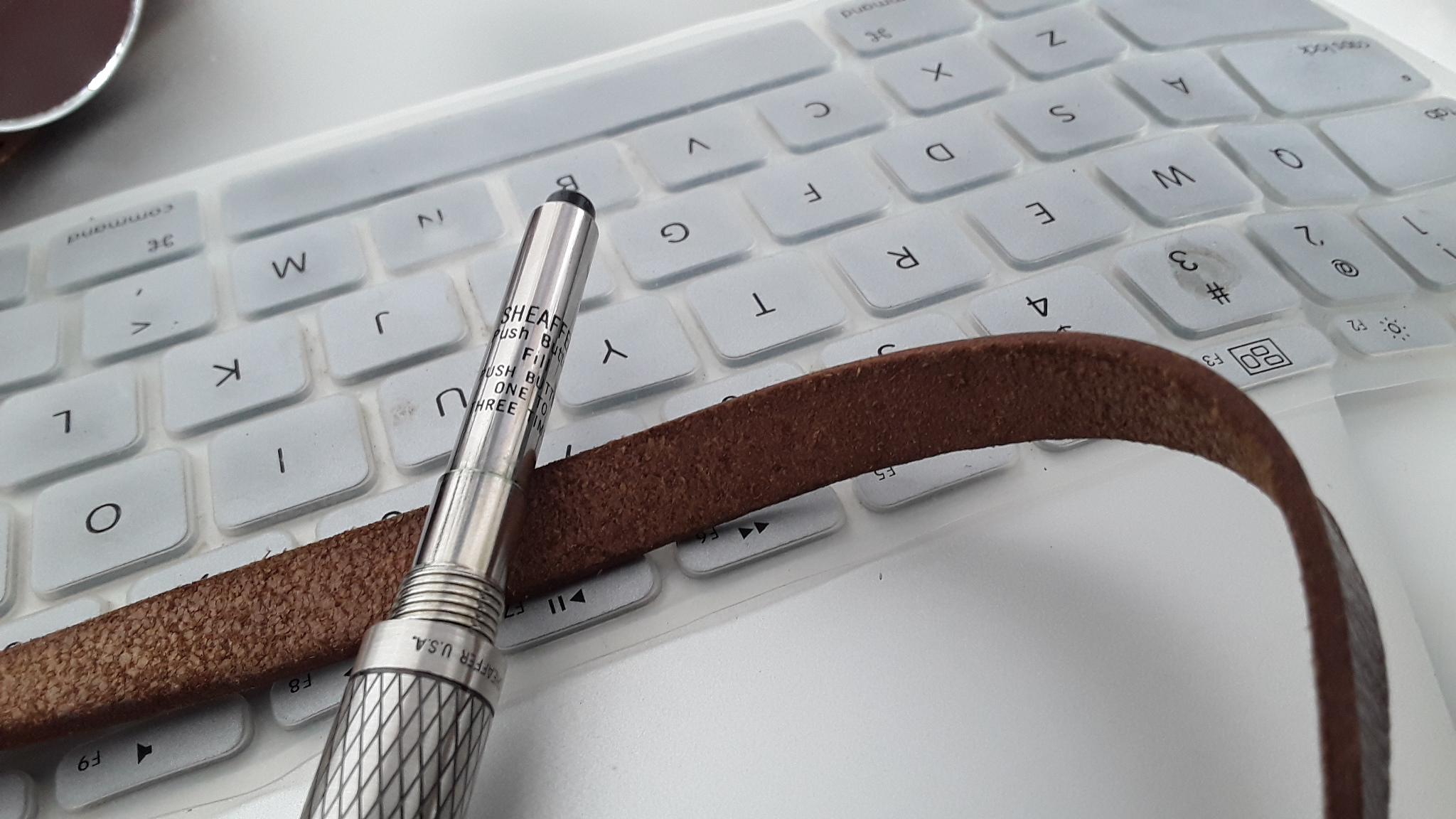 Bella la Sheaffer in argento massiccio. La penna è molto leggera perché il fusto interno è di plastica il che rende la penna molto ergonomica anche se è relativamente piccola (se usata col cappuccio non calzato). Quel converter mi sa che è uno dei primi (forse caricamento a pulsante di fondo) , se funziona ancora usalo, altrimenti compra un converter a pistone Sheaffer moderno per una decina di euro e sei a posto.