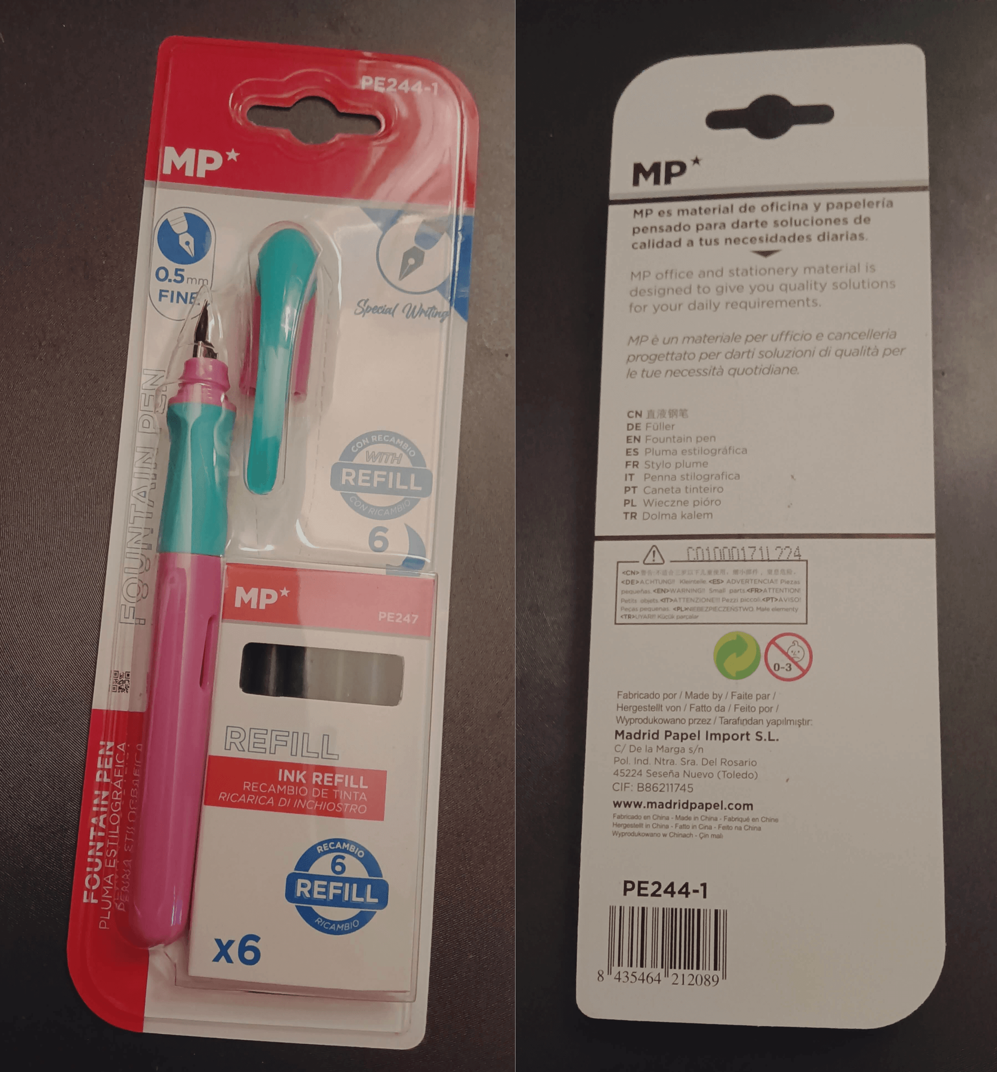 Ho poi verificato che il marchio MP è spagnolo, l'azienda si chiama MainPaper ed ha sede a Toledo. Quasi tutti i prodotti di cancelleria nel supermercato erano di questo marchio.