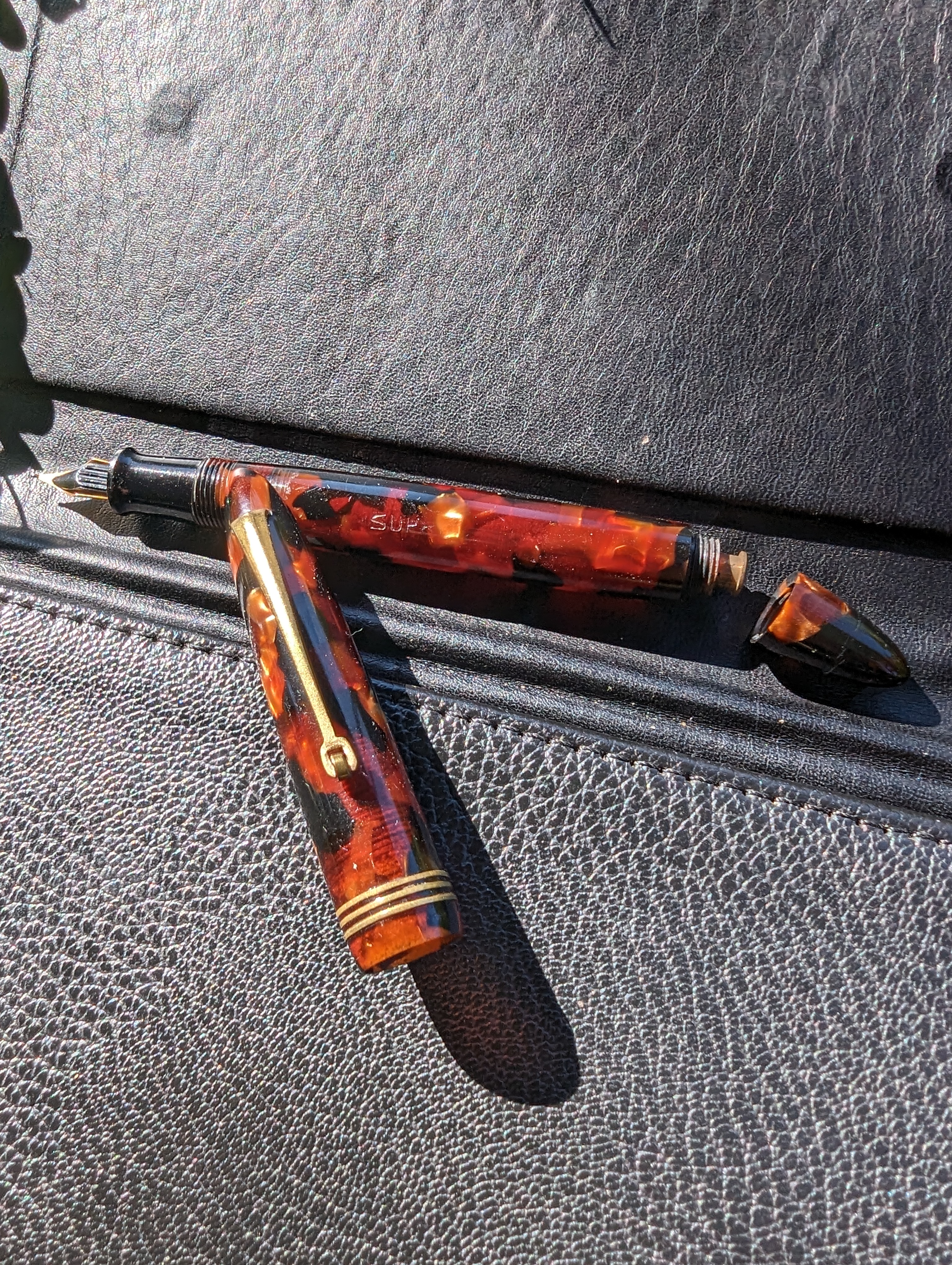 Parker Duofold streamlined, da sistemare, pennino a parte, bel colpo per pochi euro,.Giorgio1955 ha scritto: ↑domenica 10 settembre 2023, 19:01 E' una streamlined degli anni '40 primi '50; sembra una bella celluloide; peccato per l'economico pennino ripiegato, se non vedo male.![]()