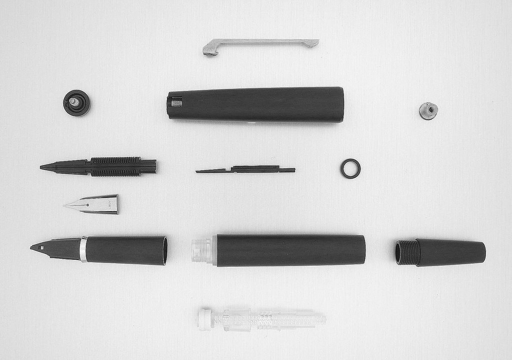Grazie mille Amadeus, avevo già visto quella foto dei componenti della penna ma ora ho compreso come fare: con una pinzetta ho tirato fuori abbastanza celermente e senza fatica alcuna il conduttore. Resta il pennino che è tenacemente agganciato al suo supporto e non viene via afferrandolo con della gomma. Per ora basta così.amadeus ha scritto: ↑domenica 24 settembre 2023, 21:20 in questo post su un forum tedesco c'è una fotografia della penna completamente smontata e si dice: