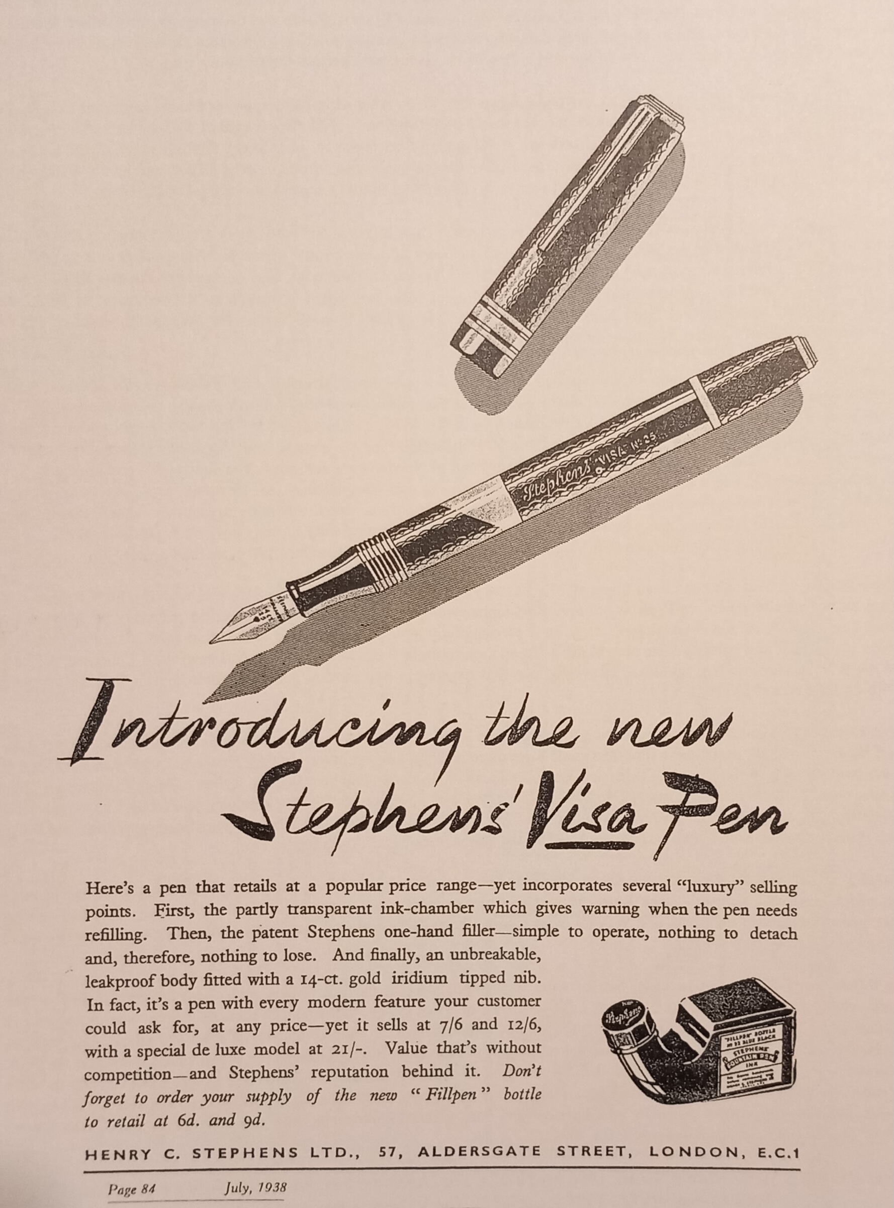 Stephens era un importante marchio inglese di inchiostri, ma aveva una compagnia "figlia" in Francia con stabilimento a Levallois-Perret, tanto che il marchio viene spesso considerato francese. Dalle pubblicità rinvenute pare che avesse una forte distribuzione in Francia.