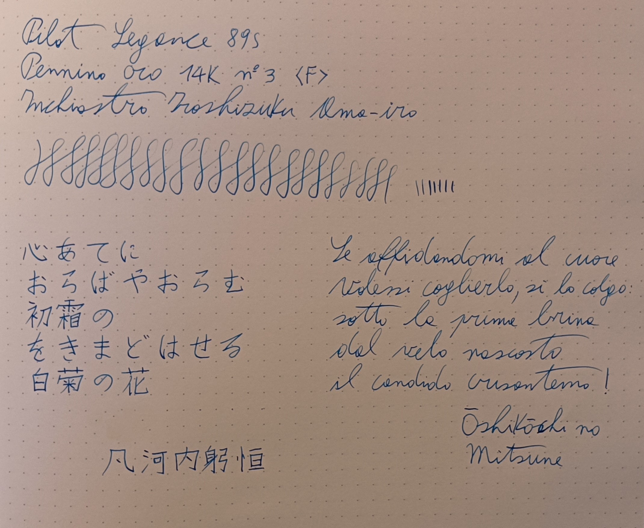 Concludo con una prova di scrittura. La poesia e la sua traduzione sono come al solito tratti dalla "Antologia della poesia giapponese" (a cura di E. Gerlini, Marsilio, 2021). Saluti inchiostrati!