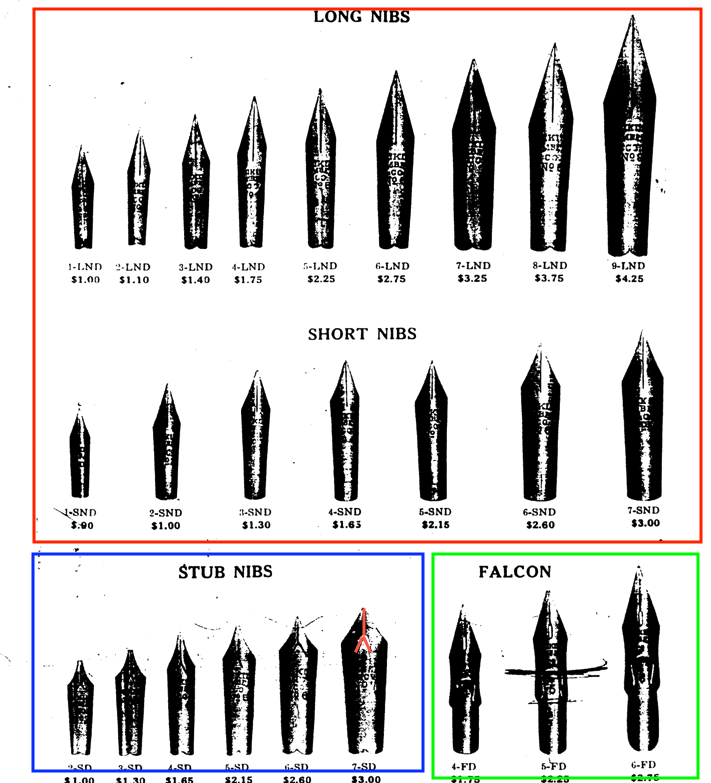 All'epoca Aikin Lambert aveva una linea di pennini ad intinzione da utilizzarsi sui suoi portapennini , che non prevedevano il foro , mentre ad esempio nella linea di pennini Falcon da utilizzarsi su cannucce di altri produttori, era presente un foro ovale (curioso come i pennini Stub avessero invece un taglio a forma di "Y" rovesciata.