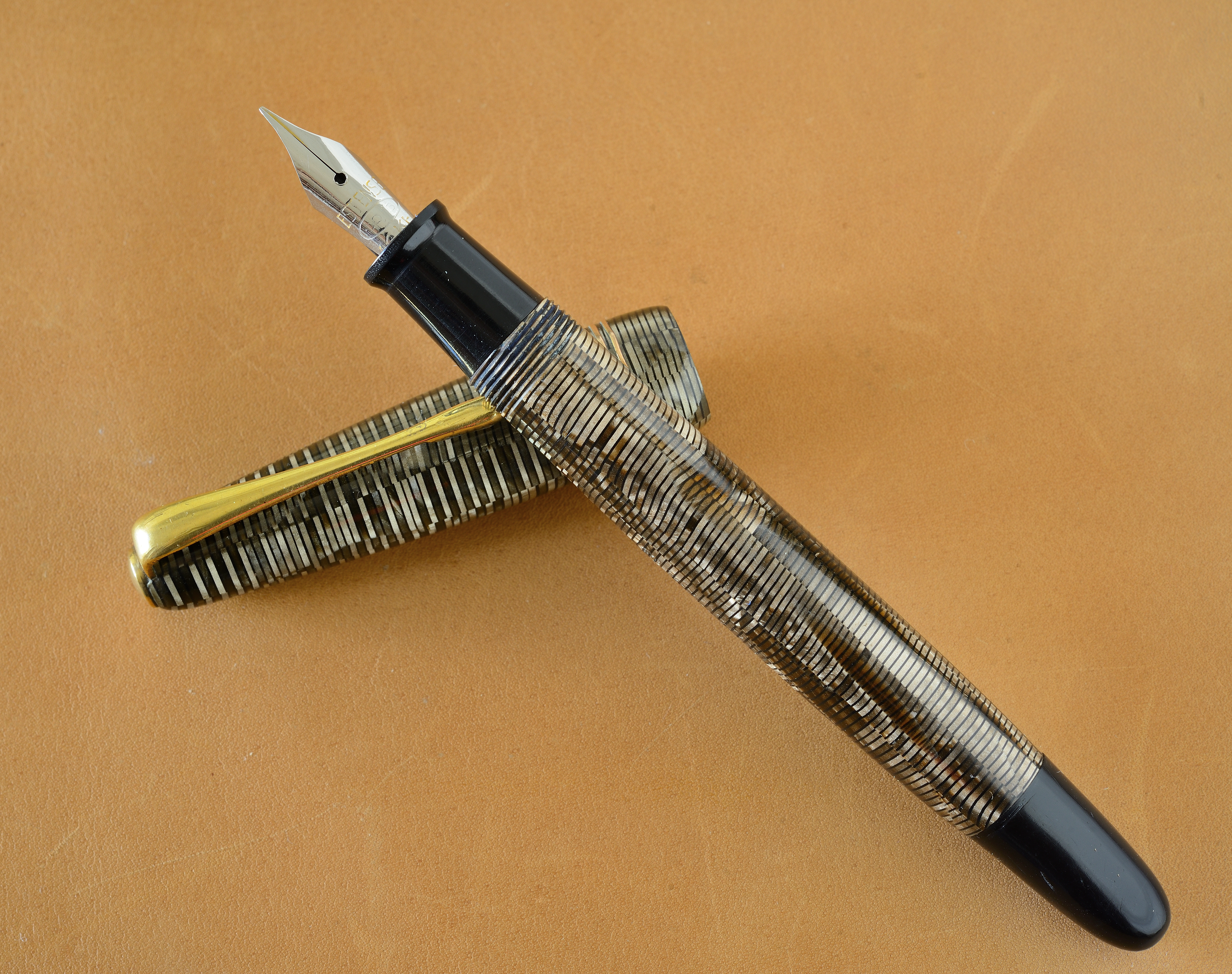 Pennino misura F in che ha perso quasi tutta la doratura. Caricamento a pulsante di fondo.