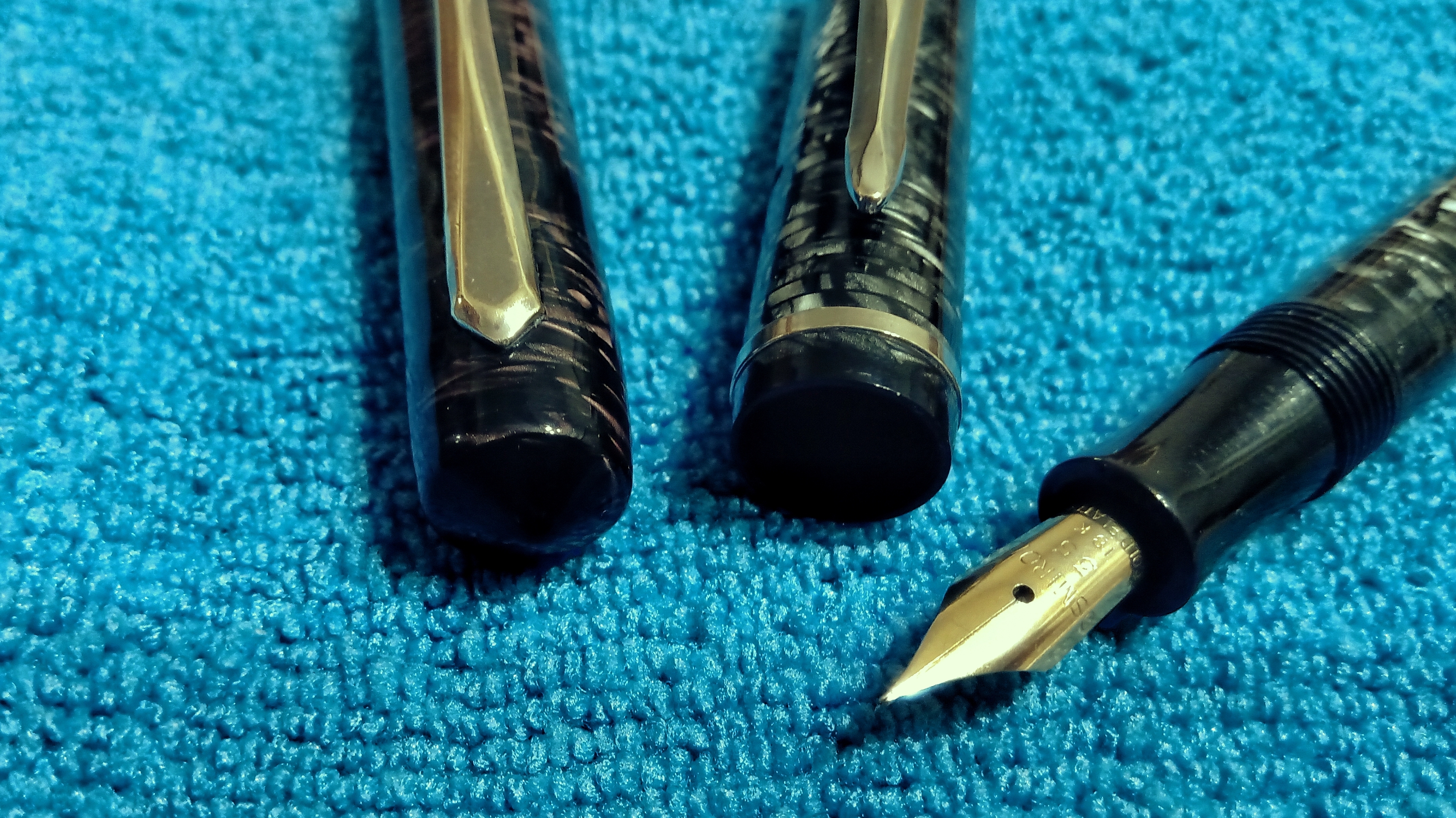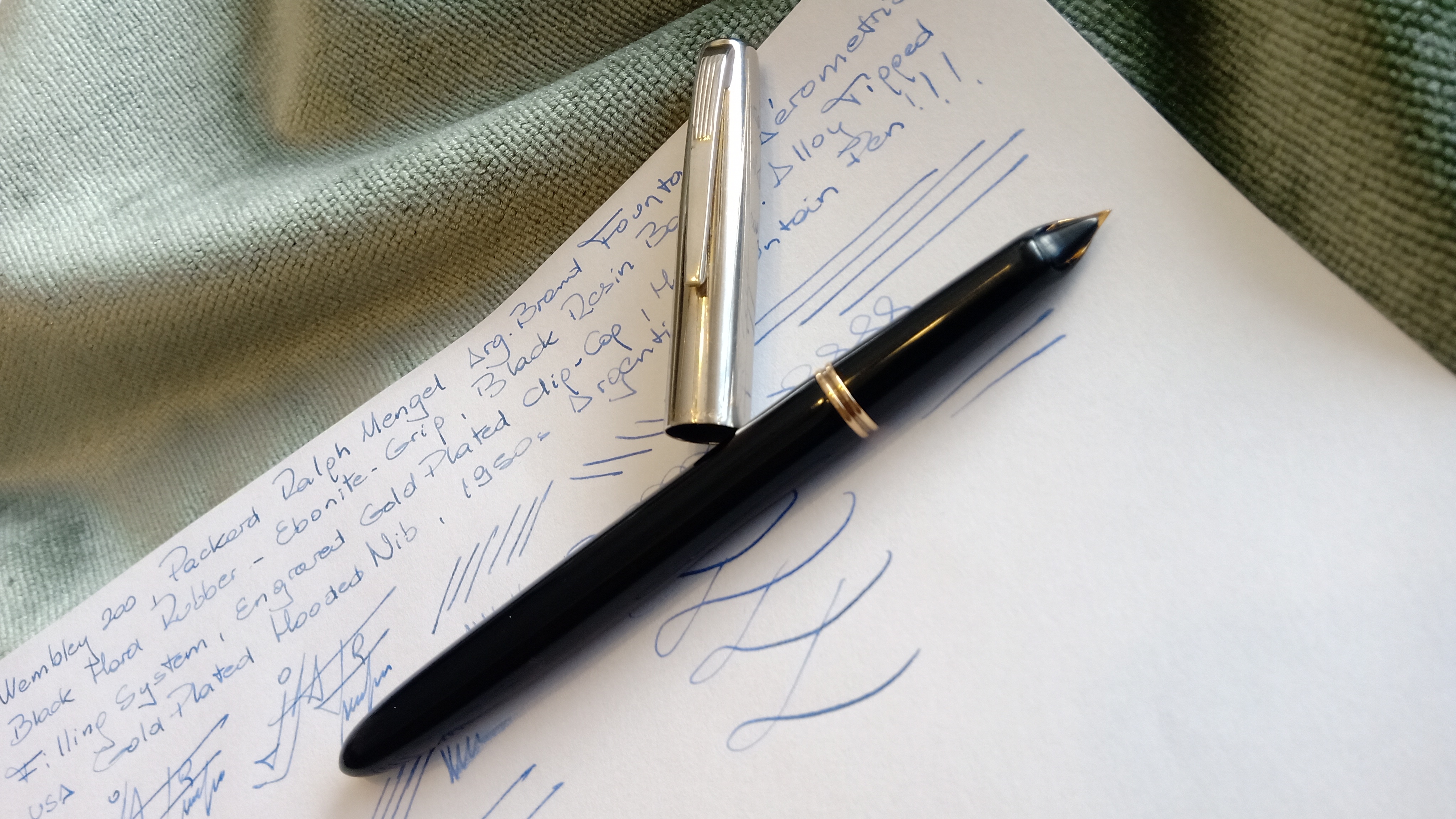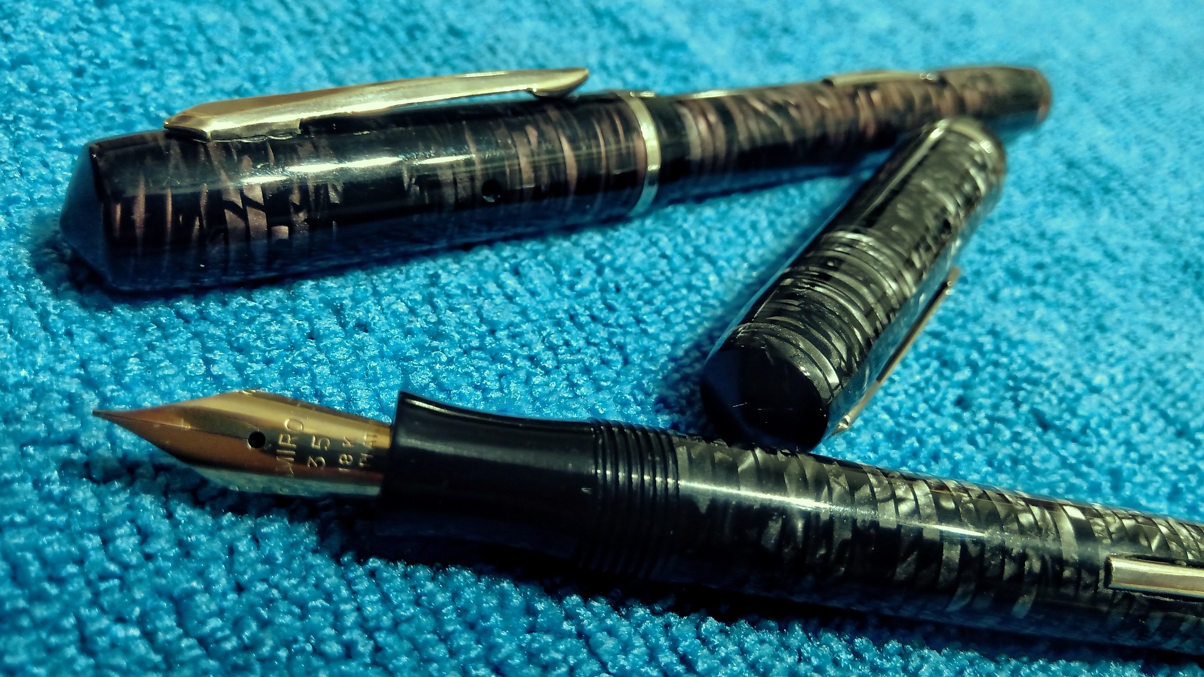 Ora è la volta di una bellissima penna stilografica Packard Ralph Mengel modello Wembley 200 anni 50/60 con sistema di caricamento aerometrico, impugnatura in ebanite nera e corpo in galatite nera, cappuccio e clip incisi e dorati, pennino ricoperto Hunt Co. placcato in oro e prodotto negli Stati Uniti....
