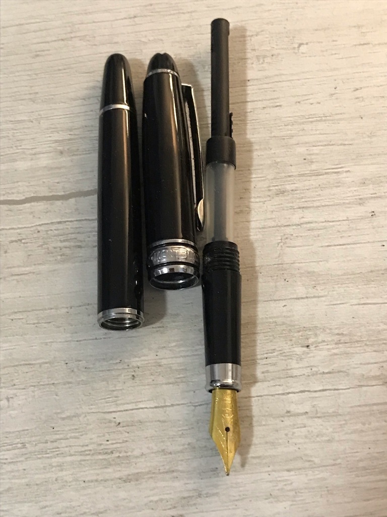 ho visto la foto della penna che riporto qui sotto. Il venditore dice che è una Montblanc Meisterstuck, il pennino è il duke. Il prezzo è sotto i 100€