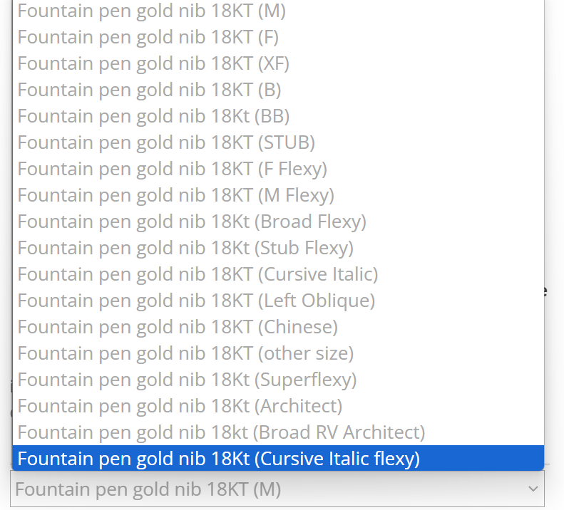 Nel campo delle penne moderne aggiungo oltre a Santini Pineider, che nelle penne di fascia medio-alta monta il "quill nib" (un pennino dichiarato flessibile) che tra le gradazioni ha anche lo stub (non so dirti quanto largo perché il produttore non lo dichiara, servirebbe chiedere a qualcuno che ce l'ha).