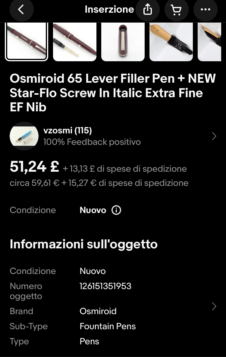 Ho comprato la Osmiroid 65 Lever Filler Pen + NEW Star-Flo Screw In Italic Extra Fine EF Nib.