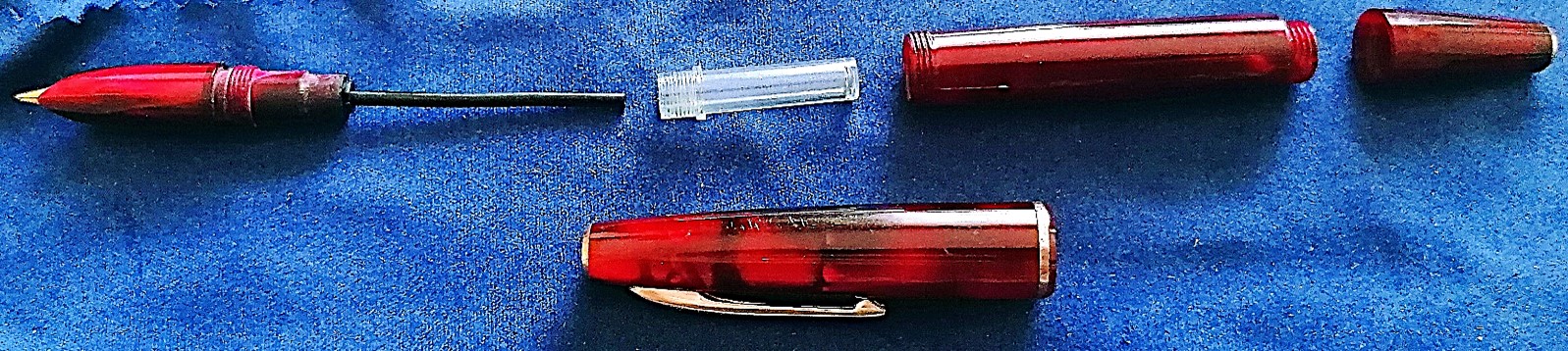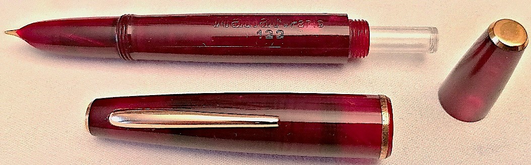 La penna in questione è una Mallat.Paris 122, in celluloide iridescente rossa (modello Lady).