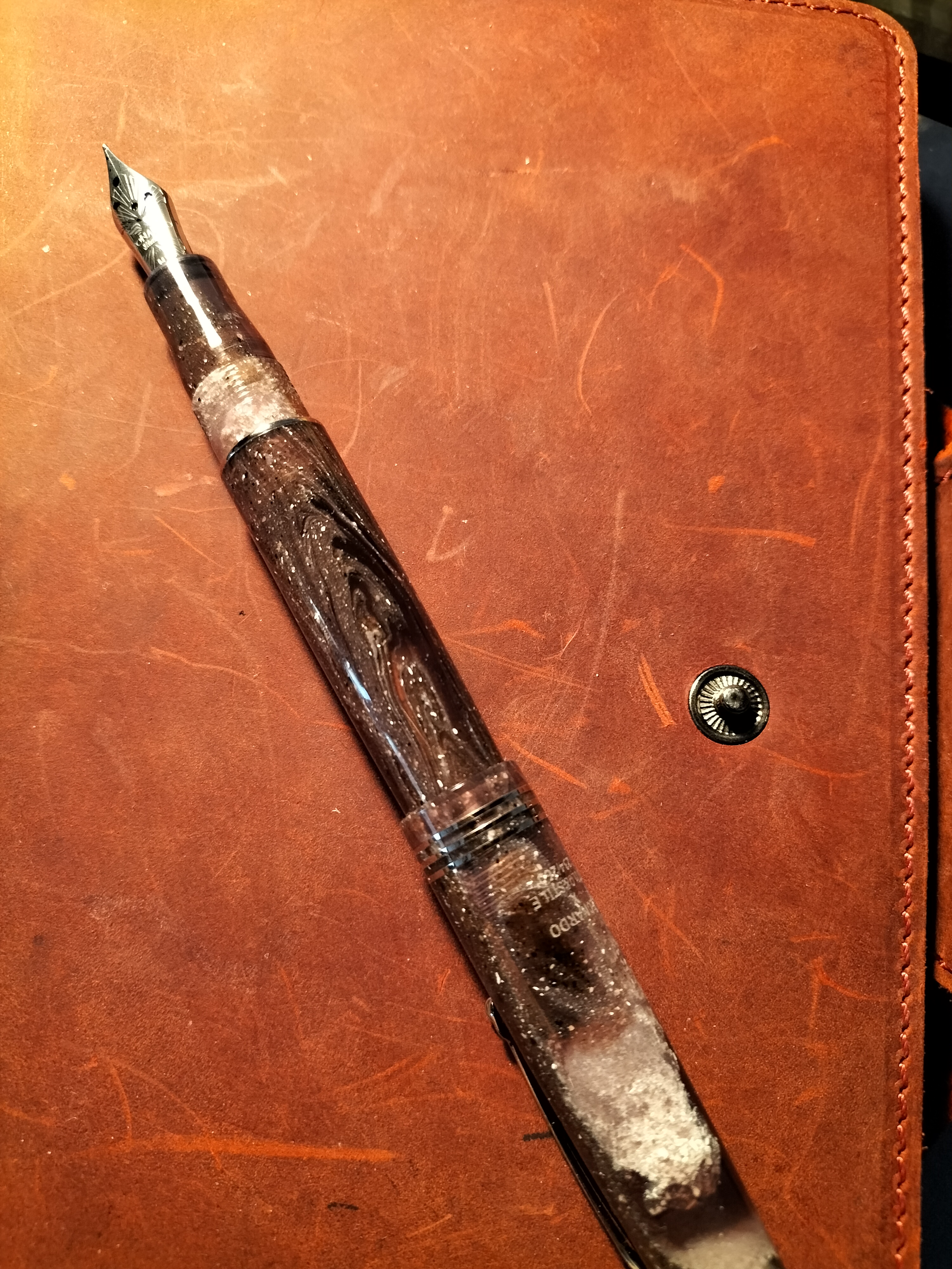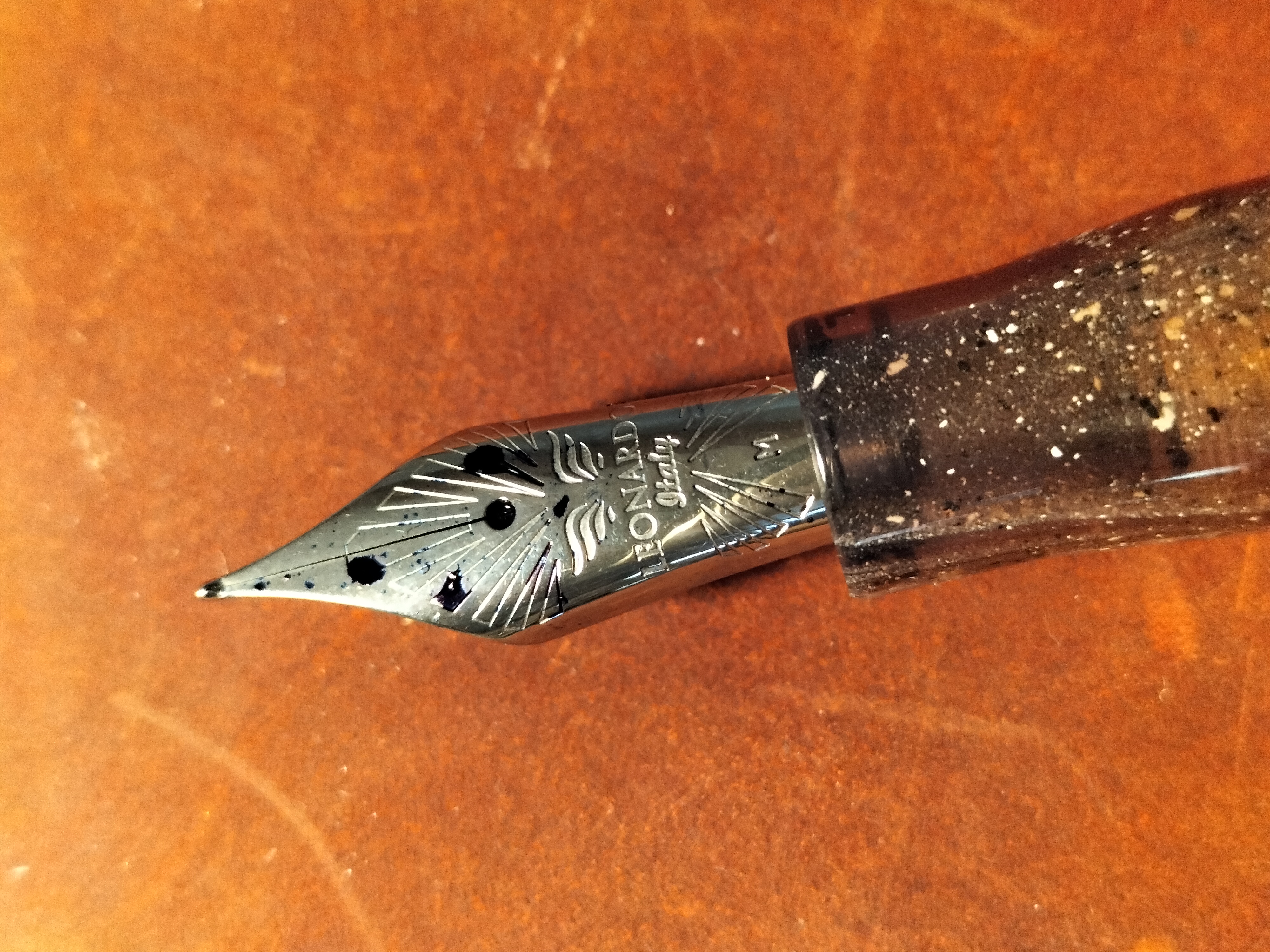 Scorrevolezza in linea con i pennini della serie, ossia ottima. Si tratta del nuovo pennino in acciacio chiamato "La Fenice" La resina presenta una colorazione "effetto galassia"