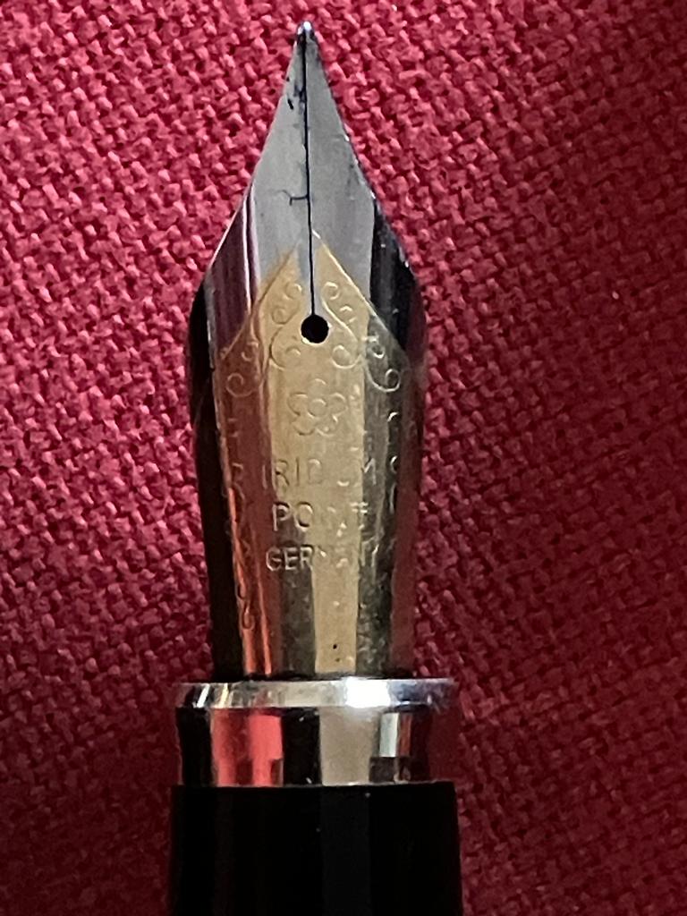 Il pennino, marcato anche sulla mia Iridium Point Germany, non è improbabile che sulla tua sia rotto e non riparabile, ma probabilmente sostituibile (sulla mia è un normale size 6), non so però se ne valga la pena.