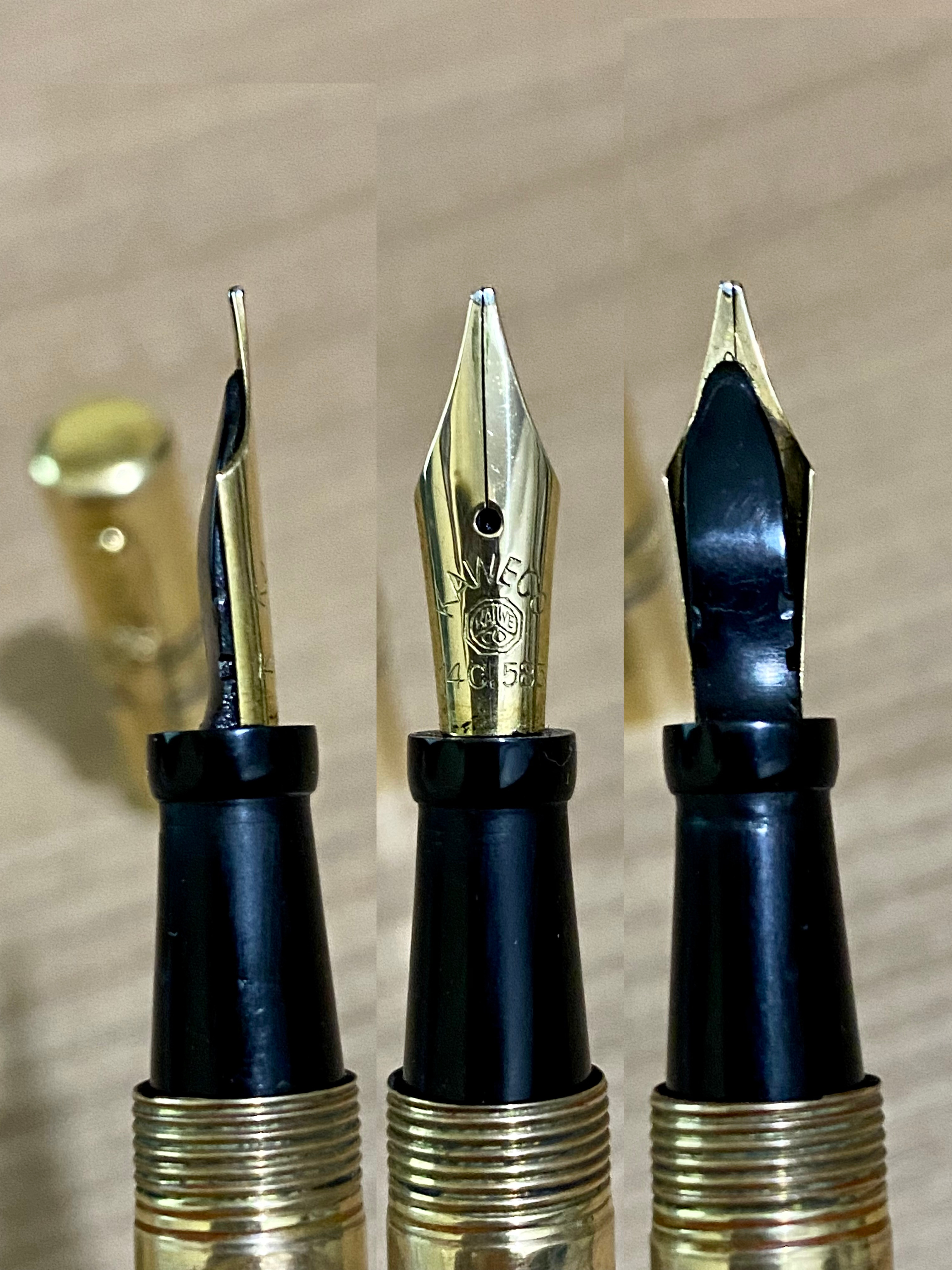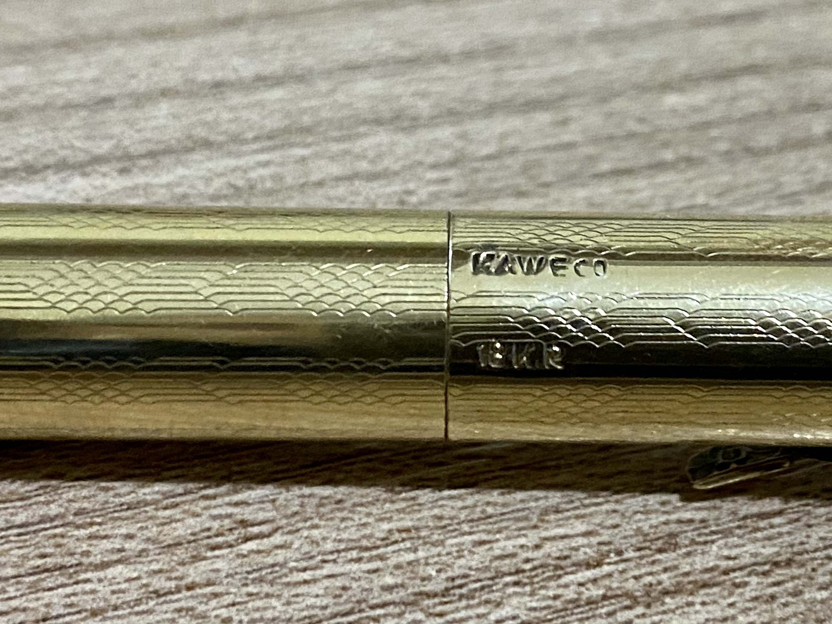 Purtroppo la penna l’ho recuperata con un pennino warranted spuntato, che reputo altamente improbabile possa essere stato il suo pennino originario. All’epoca Kaweco era un marchio di gran pregio e, dopo aver acquisito Morton, i pennini se li faceva in casa a Heidelberg sin dal 1913. Non credo che avrebbe mai prodotto un pennino Warranted per le sue elitarie penne. Dopo sfiancanti ricerche il meglio che sono riuscito a trovare è un pennino prodotto dalla nuova gestione che rilevò il marchio dopo la bancarotta del 24 Maggio 1929, riconoscibile dal nuovo logo Kaweco ancora in uso dalla attuale gestione.
