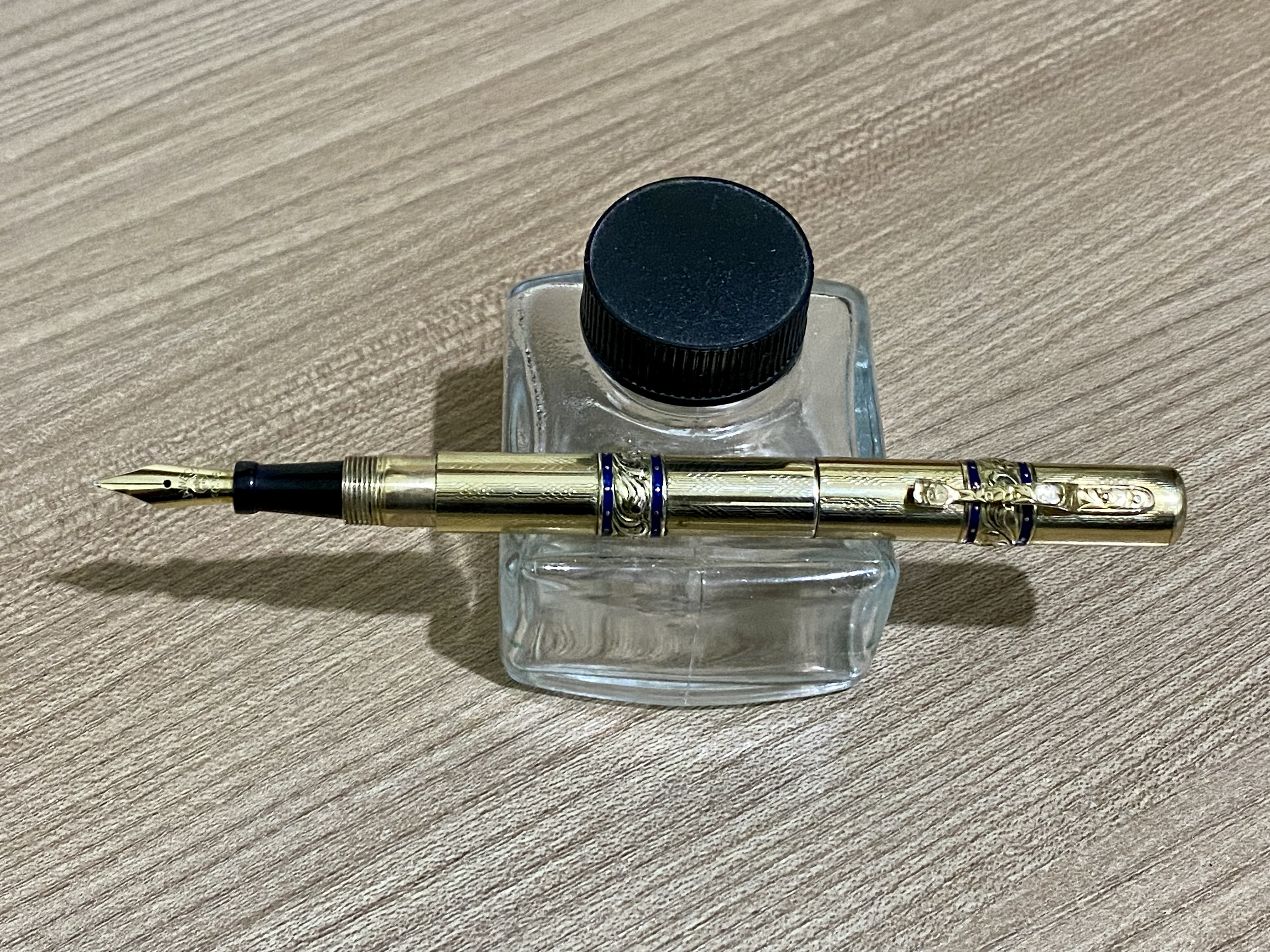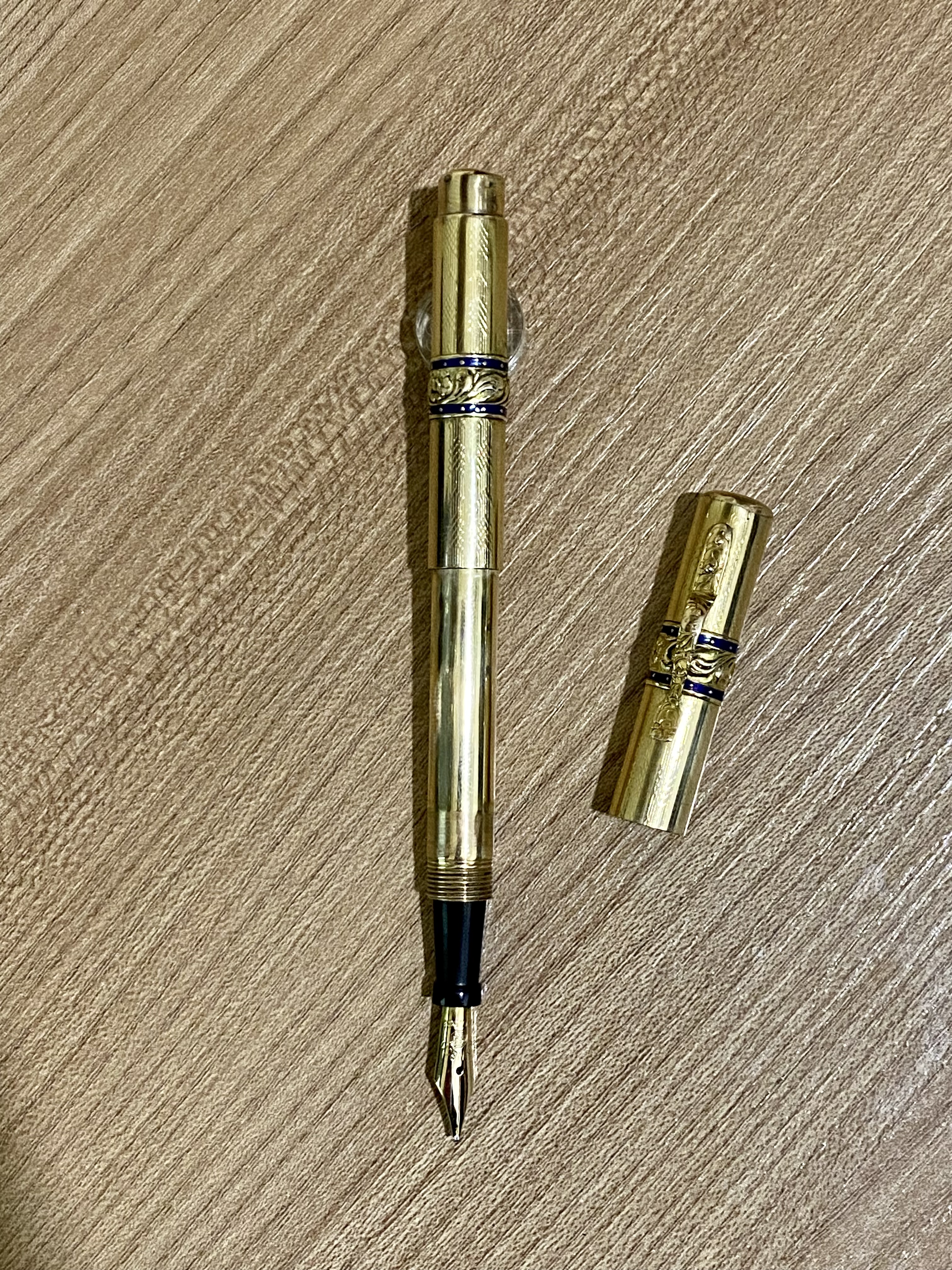 Tuttavia, Kaweco commissionava le laminature inizialmente a Uhlmann’s Eterno e successivamente a Cavaliere. Ma se consideriamo sia il suo periodo di produzione che (soprattutto) la tipica decorazione a smalti e fioriture a sbalzo, si può' ritenere molto verosimile che la laminatura sia stata realizzata Eterno.