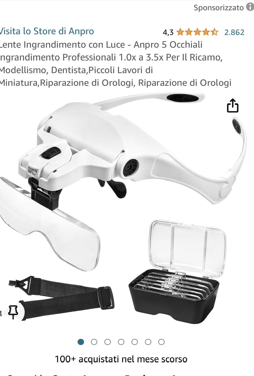 Alcuni esempi, consiglio negozio fisico per la scelta migliore. Queste vanno da 3x a 21x, più alto è l'ingrandimento più difficoltosa è la messa a fuoco. La gialla e la nera hanno una lampadina incorporata.