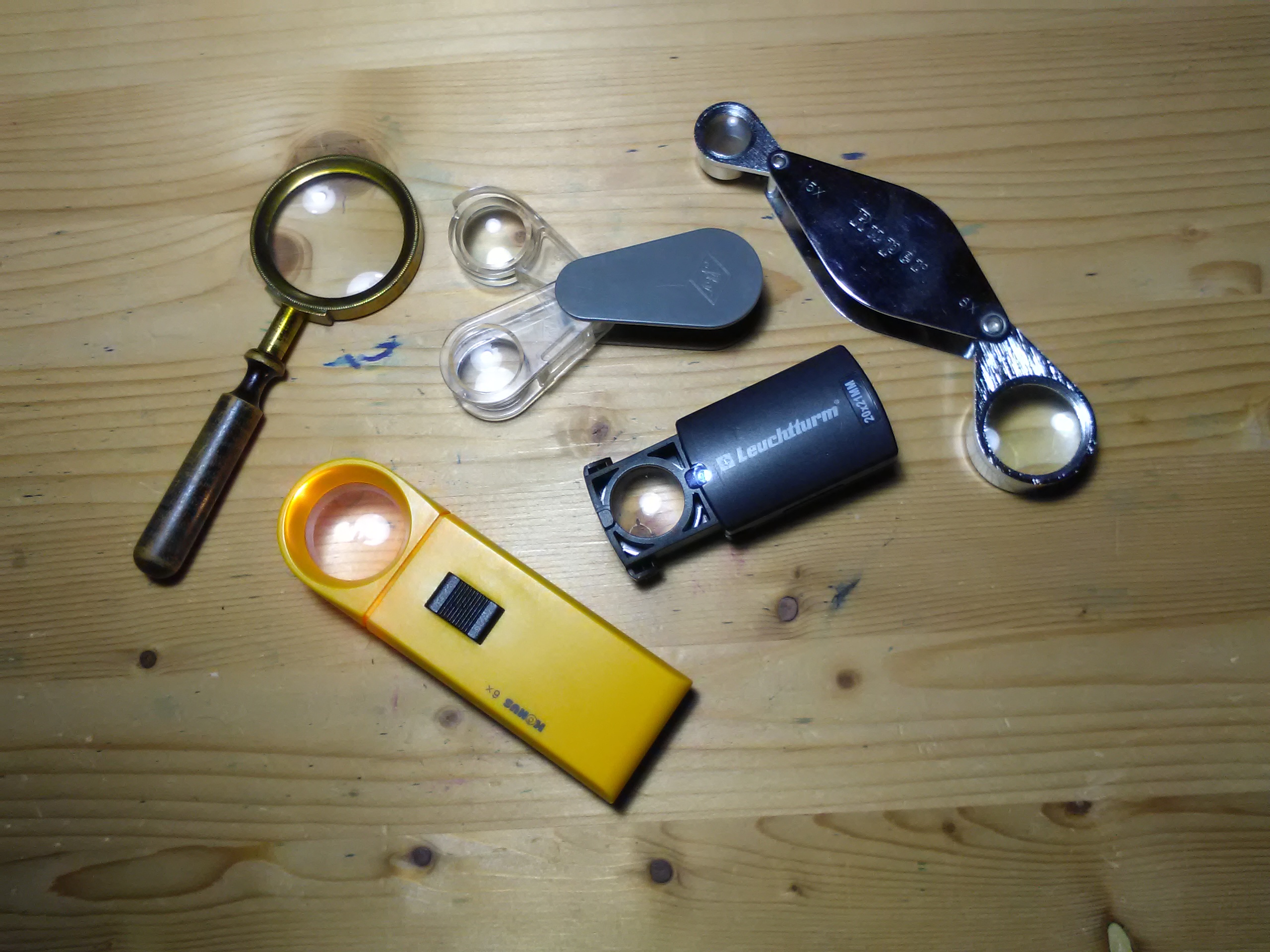 Io uso questa, è una lente per i difetti nei tessuti che usava mia madre al lavoro (lavorava ai telai), è una 9x e quando devo mettere mano ai pennini per allineare le punte effettivamente sento il bisogno di qualche ingrandimento in più, quindi secondo me 10x è un po' pochino, meglio 15x.