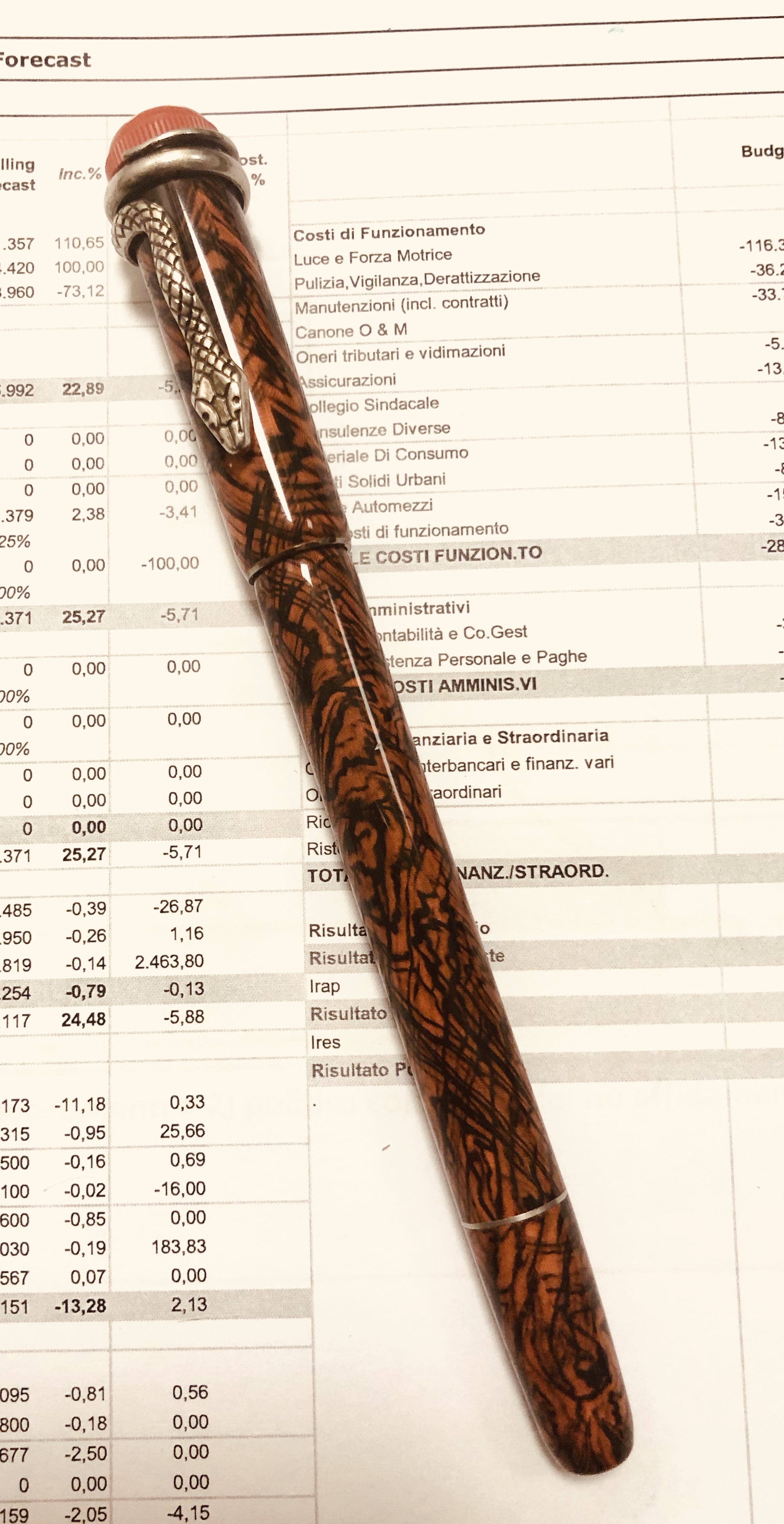 Sul discorso usabilità diciamo che pensavo di orientarmi così: acquisterei a un buon prezzo la R&N in ebanite a fini collezionistici/di "investimento", se mi dite che ha senso, per usarla ogni tanto. Acquisterei la spider/sepent coral o marble a fini di uso e, secondariamente, collezionistico.