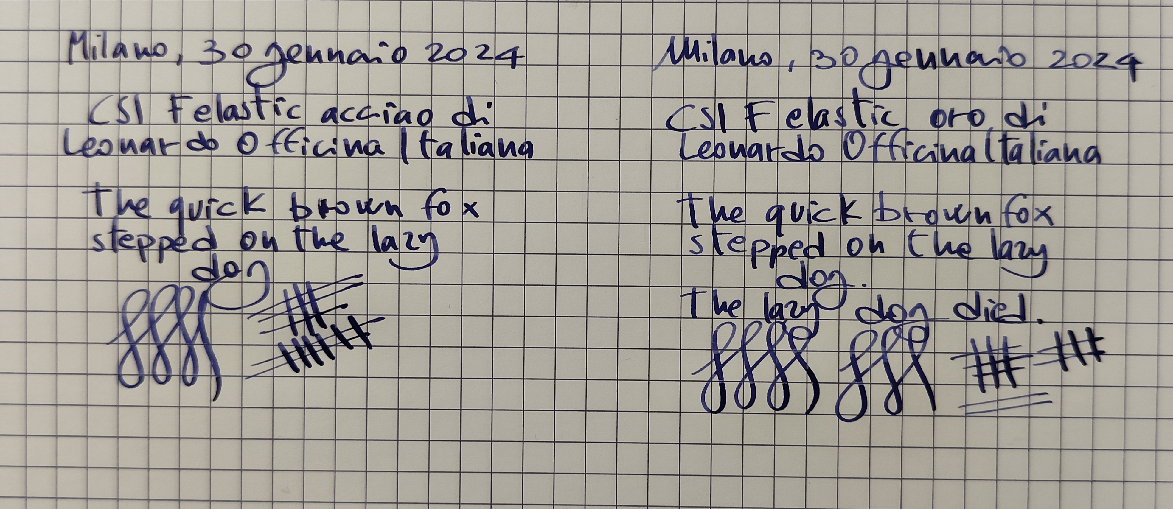 Come promesso allego la prova di scrittura con il CSI m della Leonardo .... voi le differenze di tratto le notate ?