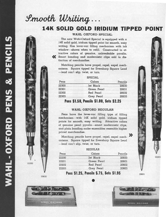 nella produzione Wahl la Oxford è conosciuta come una stilografica di fascia economica. Essa venne diffusa in due edizioni, laddove la prima è databile tra il 1931 e il 1937 e la seconda negli anni successivi, fino al 1941.
