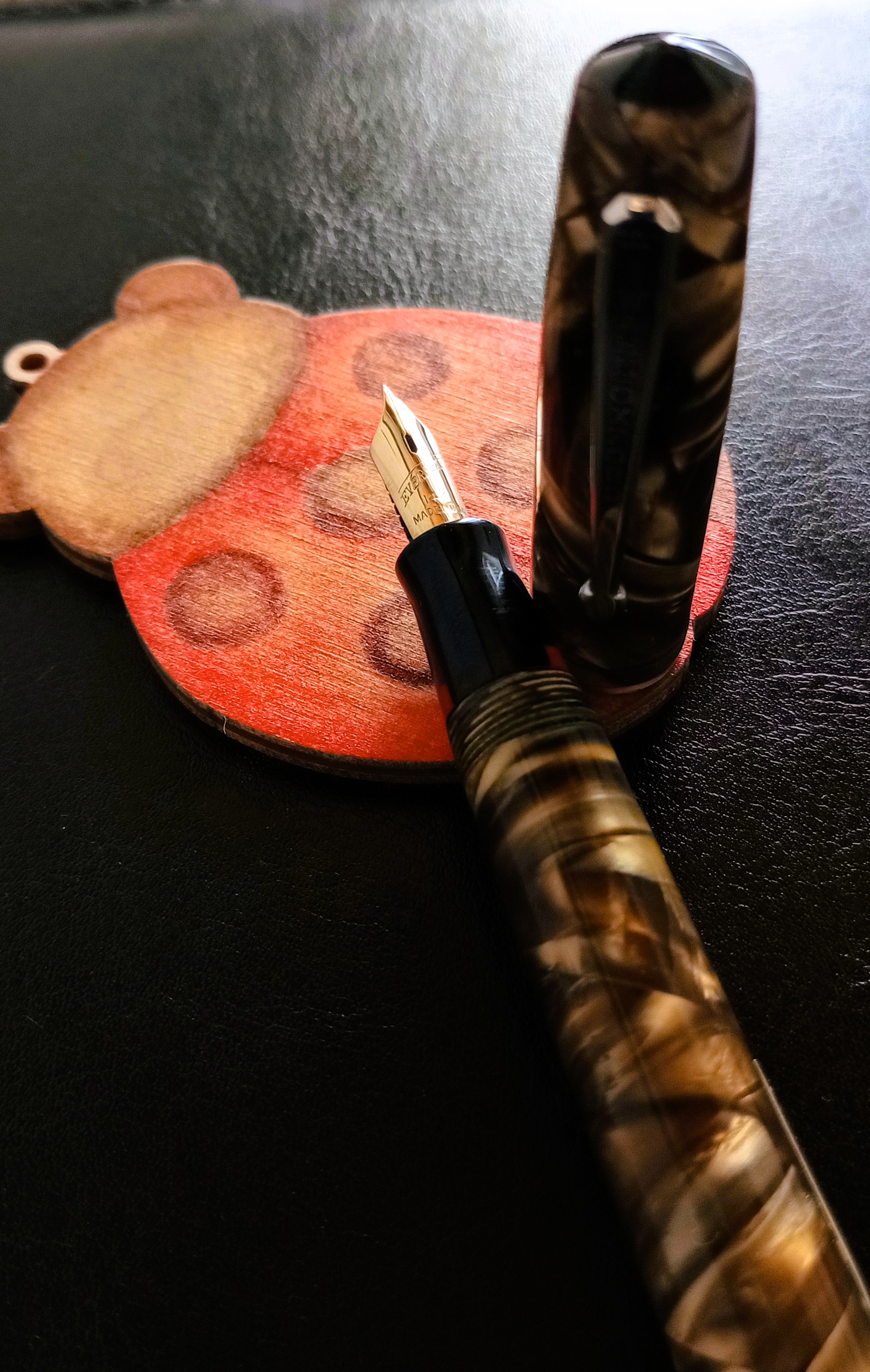 Nonostante qui si vedano i raggi del sole riflettersi sul pennino, vi assicuro che le foto non rendono giustizia a questa bella celluloide.