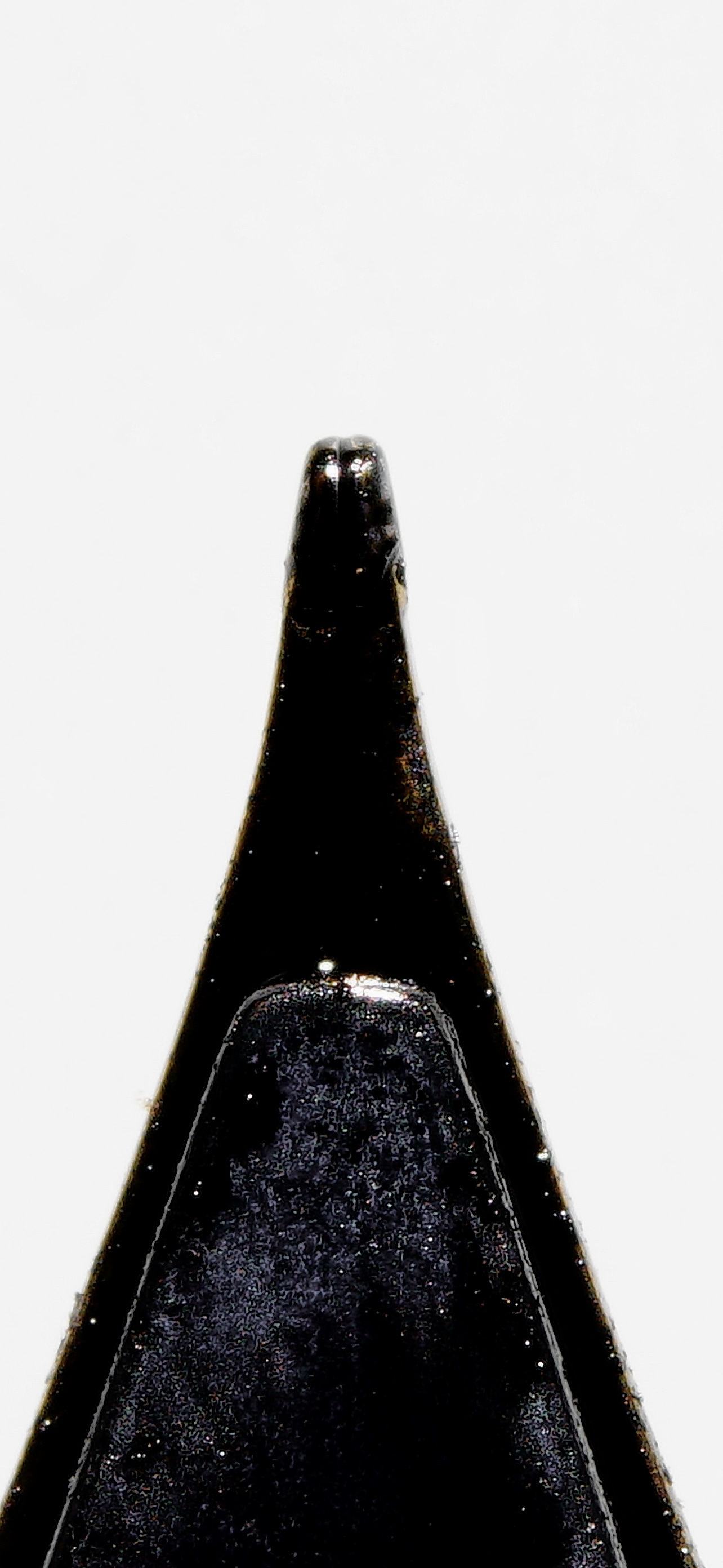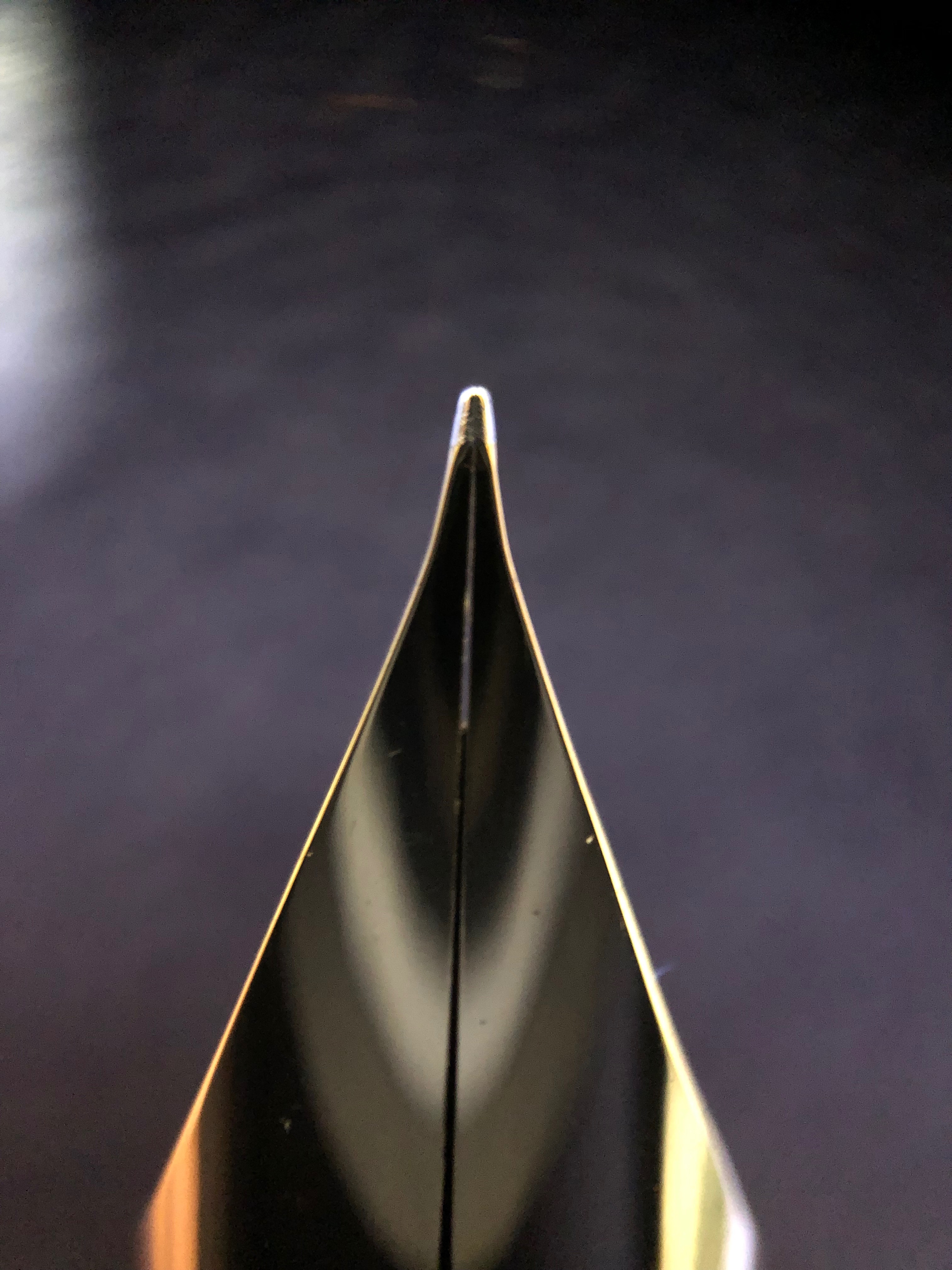 L'approccio di Montblanc mi sembra più complicato. Disegna una punta a tronco di cono - come quella di molti dei suoi pennini nello stile "architect" - ma poi la leviga sui bordi e la assottiglia nella parte inferiore per ottenere una linea che non presenti quasi variazione tra orizzontali e verticali e possa scorrere senza impicci in ogni direzione. Mi sembra - da non esperto - un pennino più difficile e laborioso da realizzare.