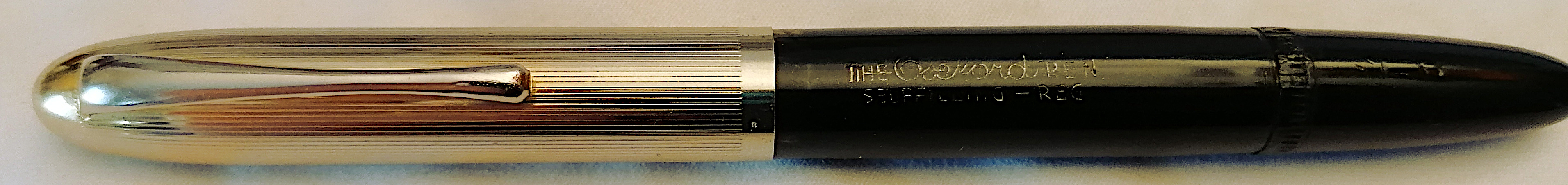 Sul fusto in celluloide nera, l'iscrizione recita: The Oxford PEN SELFFILLING REG. (su due righe), Ink-watch color giallo.